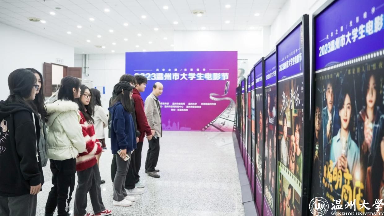 启动仪式外场,《三大队》《再见,李可乐》《爆裂点》《开国将帅授衔1955》《热血长虹》等15部优秀国产影片海报吸引了众多大学生。温大学生朱鹏程高兴地说:“温州高校也有大学生电影节啦!很欣喜!这些海报展示的大部分电影,我都想看。我喜欢和朋友一起看电影,这样能缓解紧张的学习生活,也能增加交流互动,增进友情。”