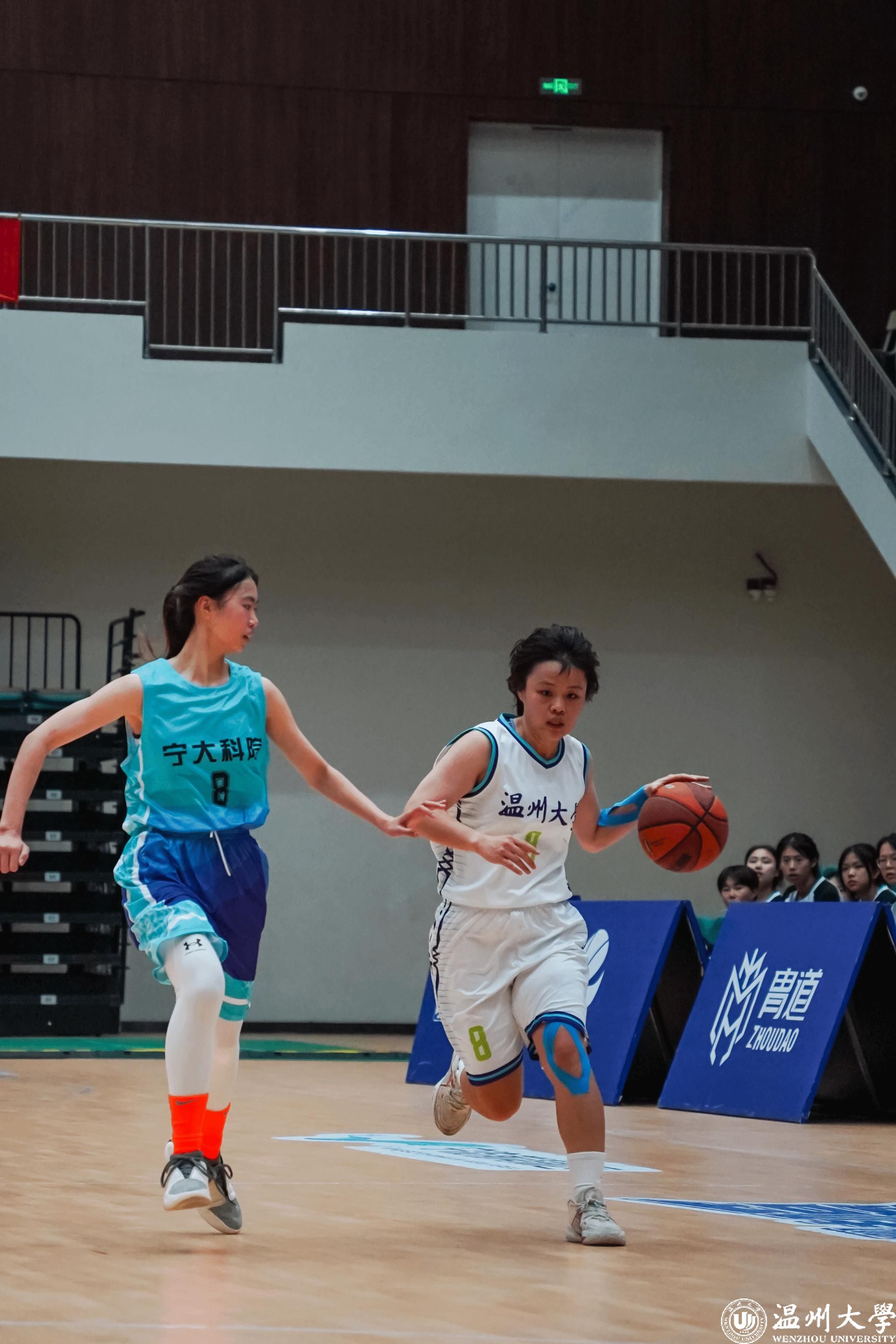 温大女篮姑娘们团结协作、拼尽全力挺进四强。在三四名决赛中,队伍率先进入比赛状态,屡次突破宁大科院防线并制造得分,上半场结束时领先对手21分。下半场,姑娘们众志成城,顺利守住比分优势,最终获得本届赛事季军。