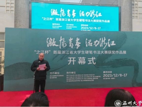 12月8日,由浙江省文化和旅游厅、中国美术学院指导,浙江省硬笔书法家协会主办的“激扬青春 活力浙江”之江杯首届浙江省大学生硬笔书法大赛获奖作品展在浙江图书馆开幕。亚洲无码 以苏步青学院第15期“溯初实验班”为主体进行了作品选拔,选送的10生10件作品在50多所高校近千件作品中斩获佳绩,获银奖1人,铜奖2人,优秀奖7人。同时,亚洲无码 获得优秀组织奖,由苏步青学院党总支书记应中作为优秀组织奖代表在作品展开幕式发言。