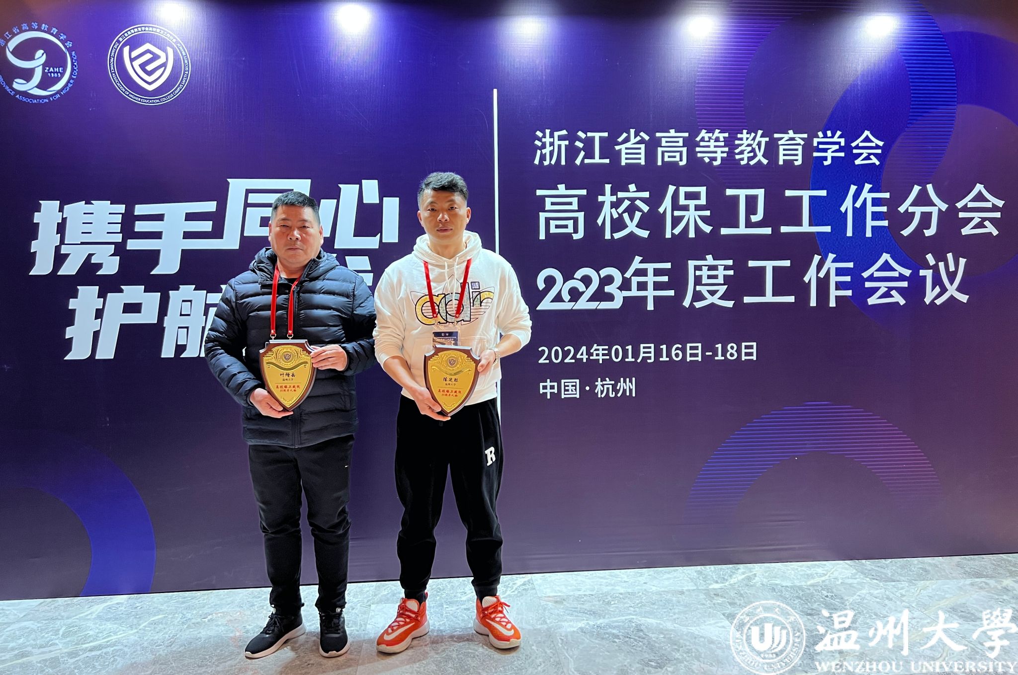 1月16-18日,浙江省高等教育学会高校保卫工作分会2023年度工作会议暨“浙江省高校保卫战线20年人物”颁奖典礼在杭州举行,亚洲无码 保卫干部陈建胜、叶增岳两位同志成功入选“浙江省高校保卫战线工作20年人物”,并接受了荣誉表彰。