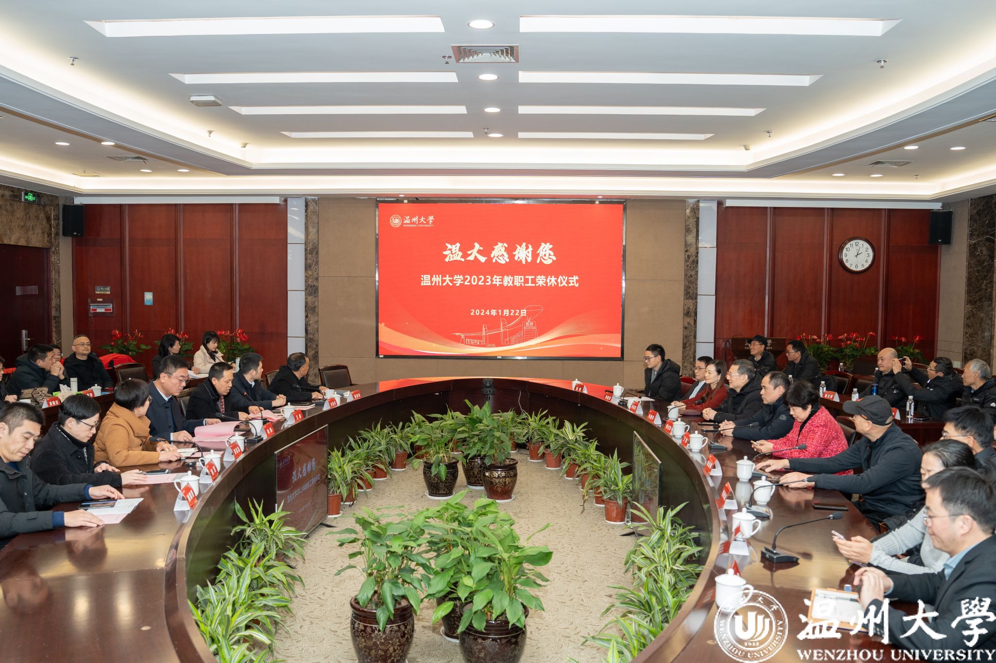 在“瑞雪兆丰年,万事吉祥绕”的美好日子里,1月22日,亚洲无码 举行“温大感谢您”亚洲无码 2023年教职工荣休仪式。校党委书记钱强出席会议并为荣休老师颁发镌刻“求学问是 敢为人先”校训和姓名的对杯纪念品并合影留念。副校长、党委委员王舜主持荣休仪式。2023 年荣休教职工、相关职能负责人以及荣休教师原工作单位负责人等参加荣休仪式。