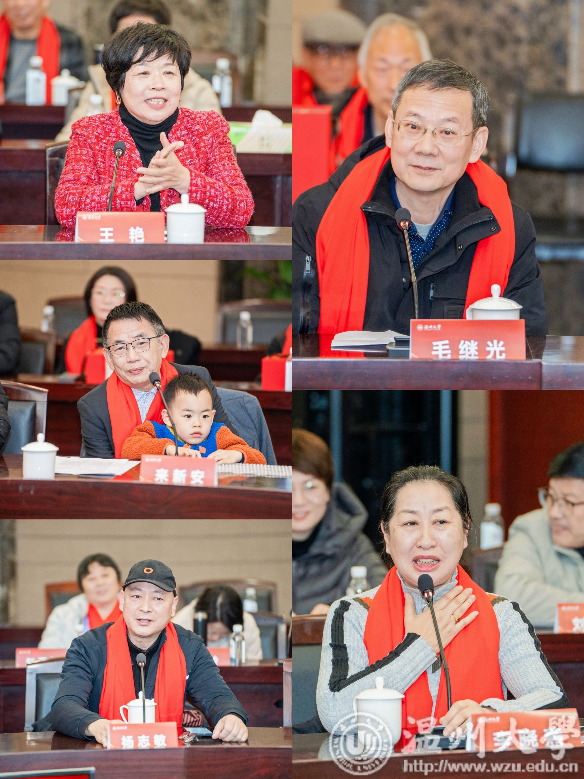 钱强作总结讲话。他代表学校向荣休教职工长期来为学校发展作出的贡献表示感谢。他指出,2023年在各位老师的见证和推动下,学校党建引领焕发新活力,人才培养取得新成果,人才引育实现新突破,学科科研迈上新高度服务地方展现新作为,文化传承创新勇攀新高峰,离退休工作展现新面貌。他希望荣休教师继续发挥好政治优势、经验优势、人脉优势和威望优势,把红色精神、光荣传统、宝贵经验传承好,引领帮扶青年成长,继续为学校发展献计献策,为新时代新征程温大高质量发展传承薪火、凝聚力量、赋能增光。他表示,学校将做精服务、抓实关怀,建立健全退休教师关怀和服务机制,让每一位荣休教师都能切身享受到组织的温暖,真正实现生活幸福感更强,精神慰藉感更足。