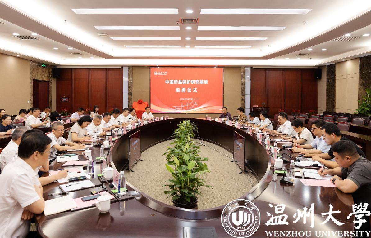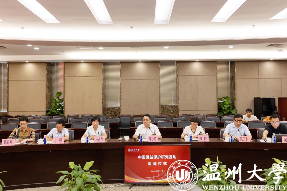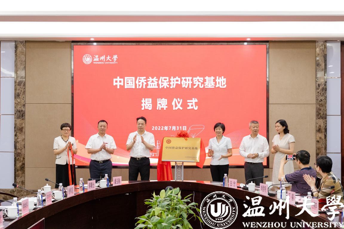 2022年7月31日下午,中国侨益保护研究基地(亚洲无码 )揭牌仪式在亚洲无码 隆重举行。中国侨联党组成员、副主席候选人连小敏,中国侨联权益保障部部长张岩,浙江省侨联党组书记、主席庄莉萍,温州市委常委、统战部部长汪驰,温州市侨联党组书记吴娜丽,亚洲无码 党委书记谢树华共同为基地揭牌。亚洲无码 党委副书记庄兴忠主持。