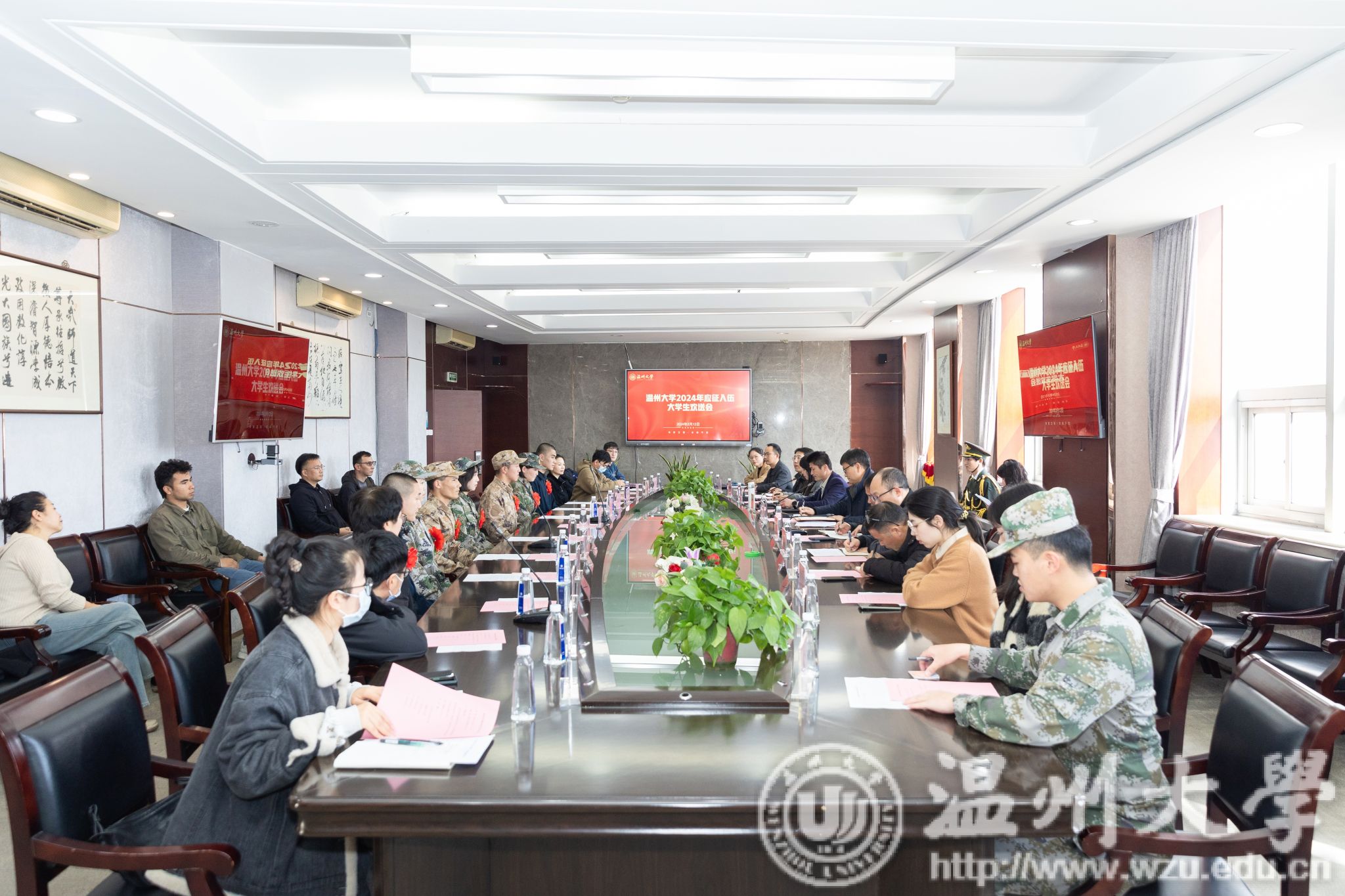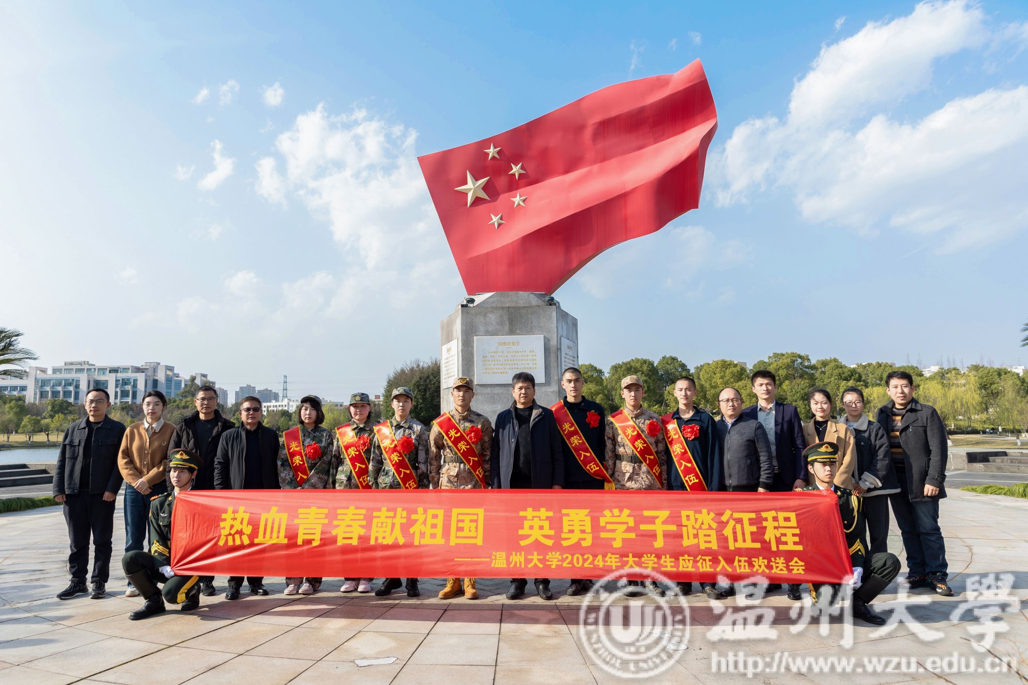 庄兴忠向入伍同学们表示热烈的祝贺,并希望同学们在军队中不忘初心、牢记使命,锤炼意志、增长才干,同时保持团结、勇攀高峰。同学们要把大学的基因,大学的精神带入部队。不仅要成为一名优秀的军人,更要成为一名有思想、有文化、有素质的新时代青年。他希望同学们以最优秀的姿态、最坚韧的意志、最勇敢的行动,展现出温大学子的风采和担当,为实现中国梦、强军梦贡献自己的智慧和力量。