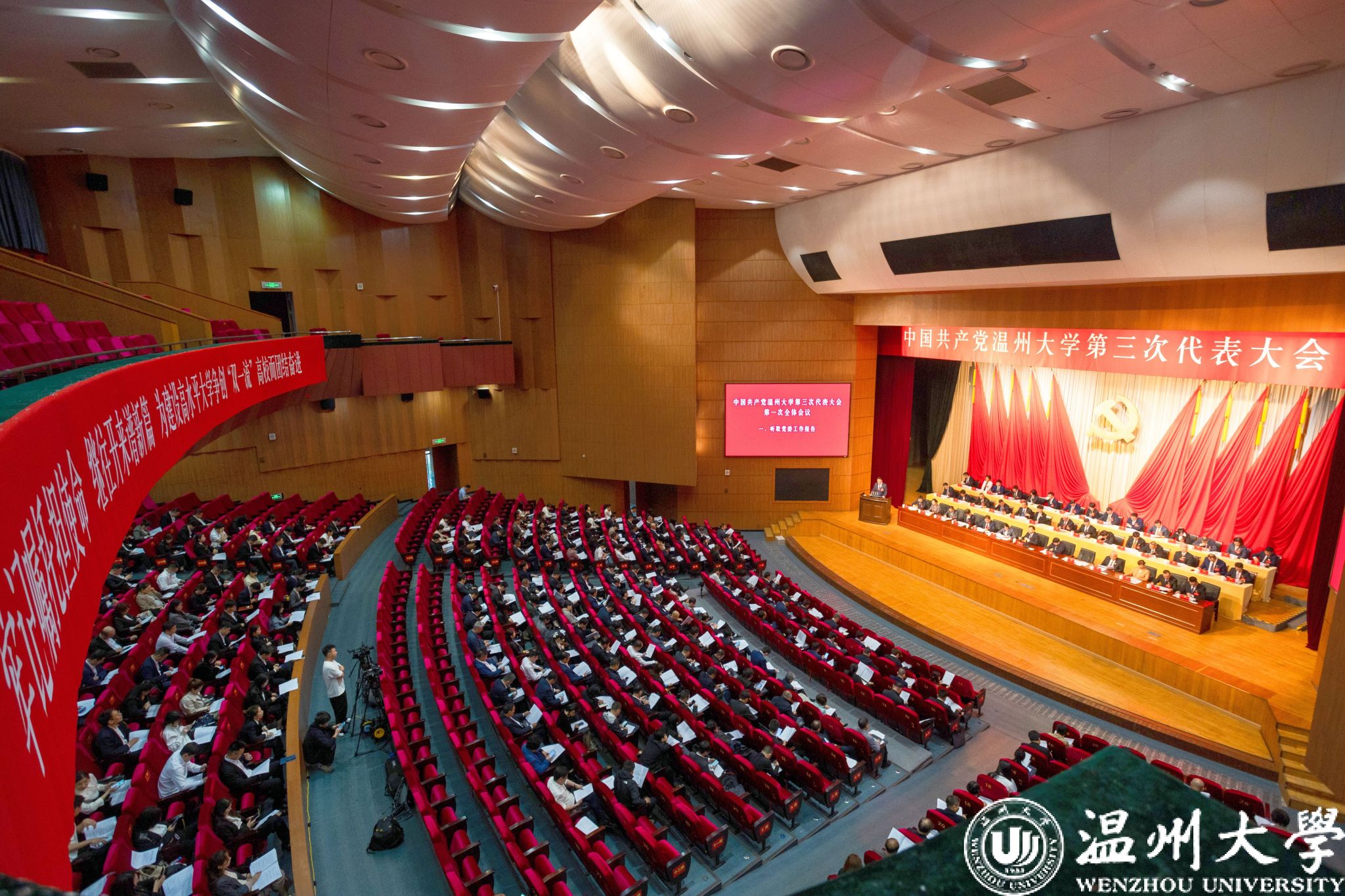 大会号召,走在新时代,迈上新征程,让我们更加紧密团结在以习近平同志为核心的党中央周围,锚定建设高水平大学、争创“双一流”高校的奋斗目标,牢记嘱托、感恩奋进,为温州实施“强城行动”、建设“五城三园”、打造全省高质量发展第三极,为浙江“勇当先行者、谱写新篇章”,为实现以中国式现代化推进中华民族伟大复兴的宏伟目标,作出新的更大贡献!