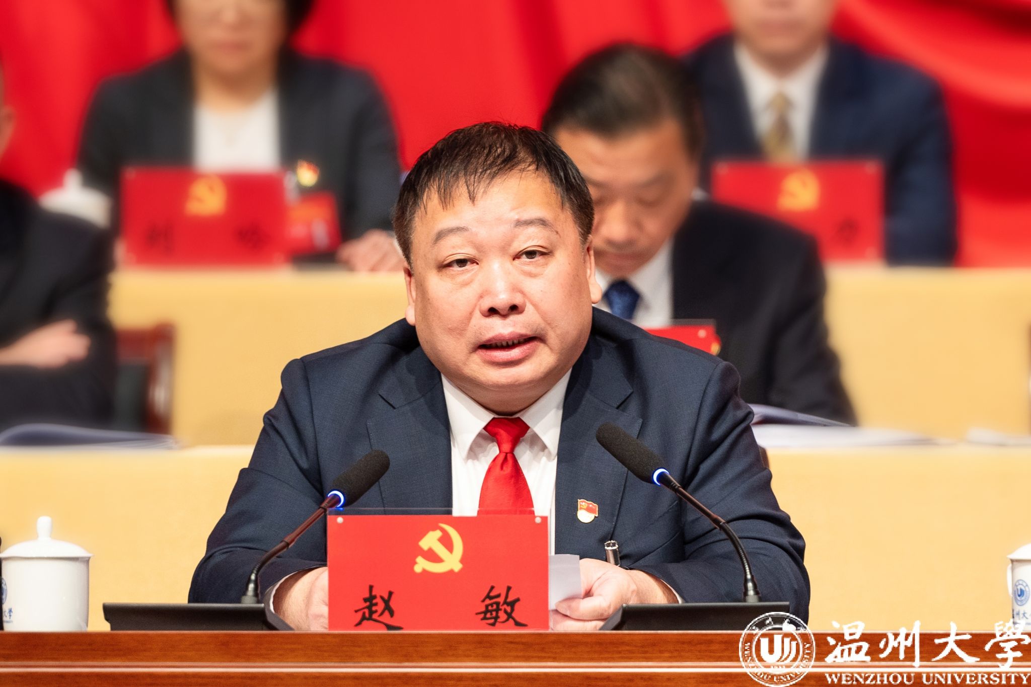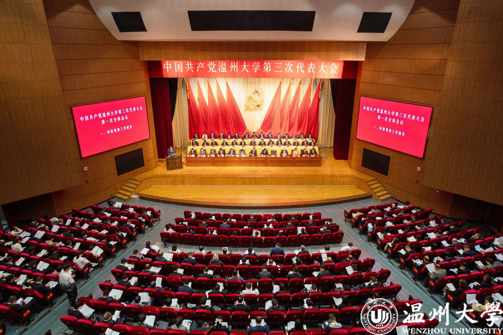 温州市委书记张振丰,市委常委、秘书长陈应许,市政府副市长王彩莲莅临大会指导。市委教育工委副书记,市教育局党委书记、局长郑焕东,市委组织部副部长王爱娥到会指导。校党委书记钱强代表中共亚洲无码 第二届委员会向大会作工作报告。校长、党委副书记赵敏主持会议。197名党代表参加。全体校领导、校级老领导代表、中国科学院院士、大会主席团成员出席。民主党派负责人、非党代表的全国政协委员应邀参加,非党代表的中层正职、直属单位负责人、重点学科负责人、学生会主席、研究生会主席列席大会。