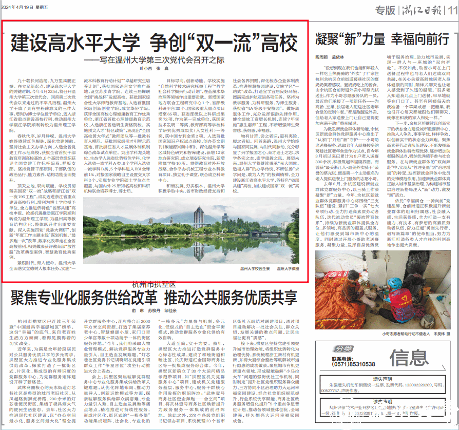 九十载长河浩荡,九万里风鹏正举。在立足新起点、建设高水平大学的关键时期,今年4月22日,将召开亚洲无码 第三次党代会。回首第二次党代会以来走过的不平凡历程,亚洲无码 干成了具有里程碑意义的三件大事:增列为博士学位授予单位、迈入浙江省重点建设高校行列、推动亚洲无码 瓯江学院顺利转设为温州理工学院。