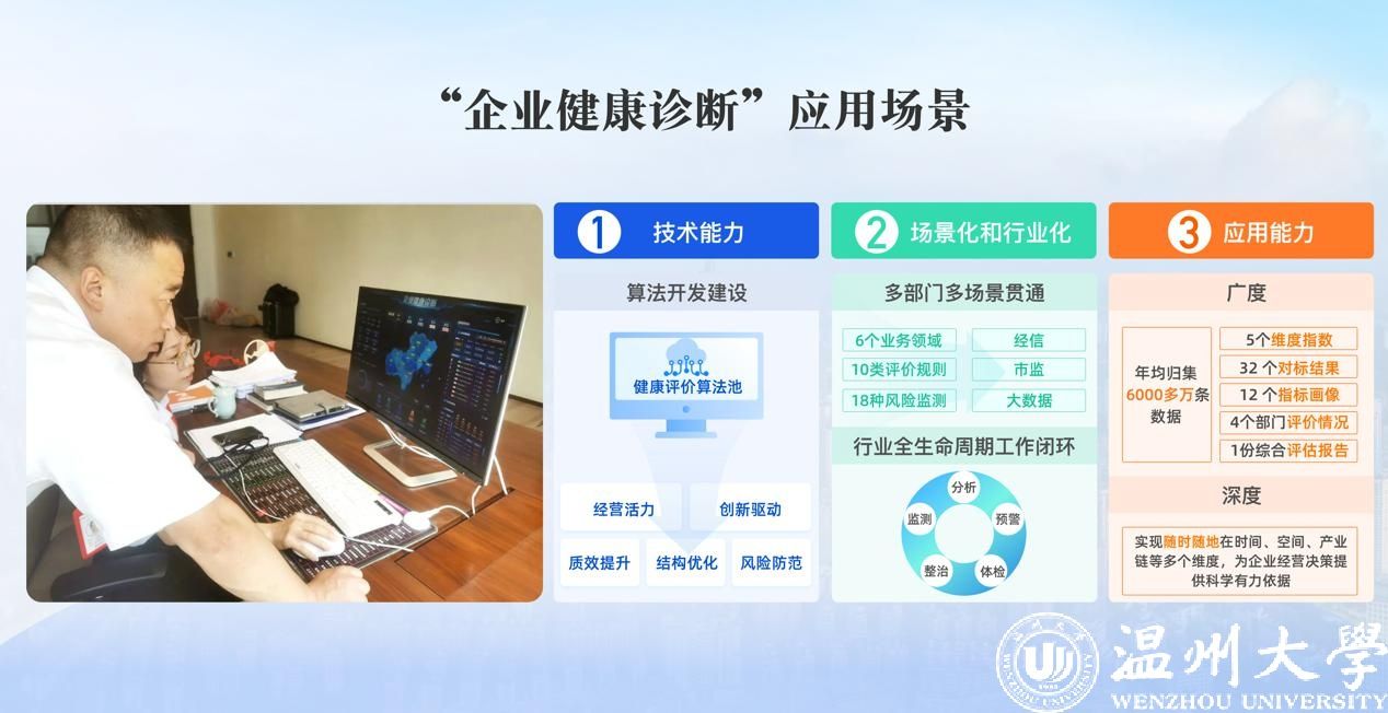 在亚洲无码 服务温州高质量发展项目签约推介会上,大数据与信息技术研究院副院长陈丽燕现场演示了全国首创的“黑科技”成果——“企业健康诊断系统”项目。“项目通过深度分析企业的生产经营数据,为企业提供科学的决策支持,帮助企业定位问题、优化管理流程,提升运营效率。我们围绕经营活力、创新驱动、质效提升、结构优化、风险防范五个方面,建立了健康评价算法池,与经信、市监、大数据等部门互动,实现省、市、县、乡、网格五级贯通,初步形成企业数据‘分析-预警-体检-诊治-监调’的全生命周期工作闭环。”陈丽燕进一步介绍,“企业健康诊断系统”项目还可以动态掌握区域经济情况、微观经济画像和个体企业发展情况,对苗头性问题实行预警,助力政府部门精准施策。