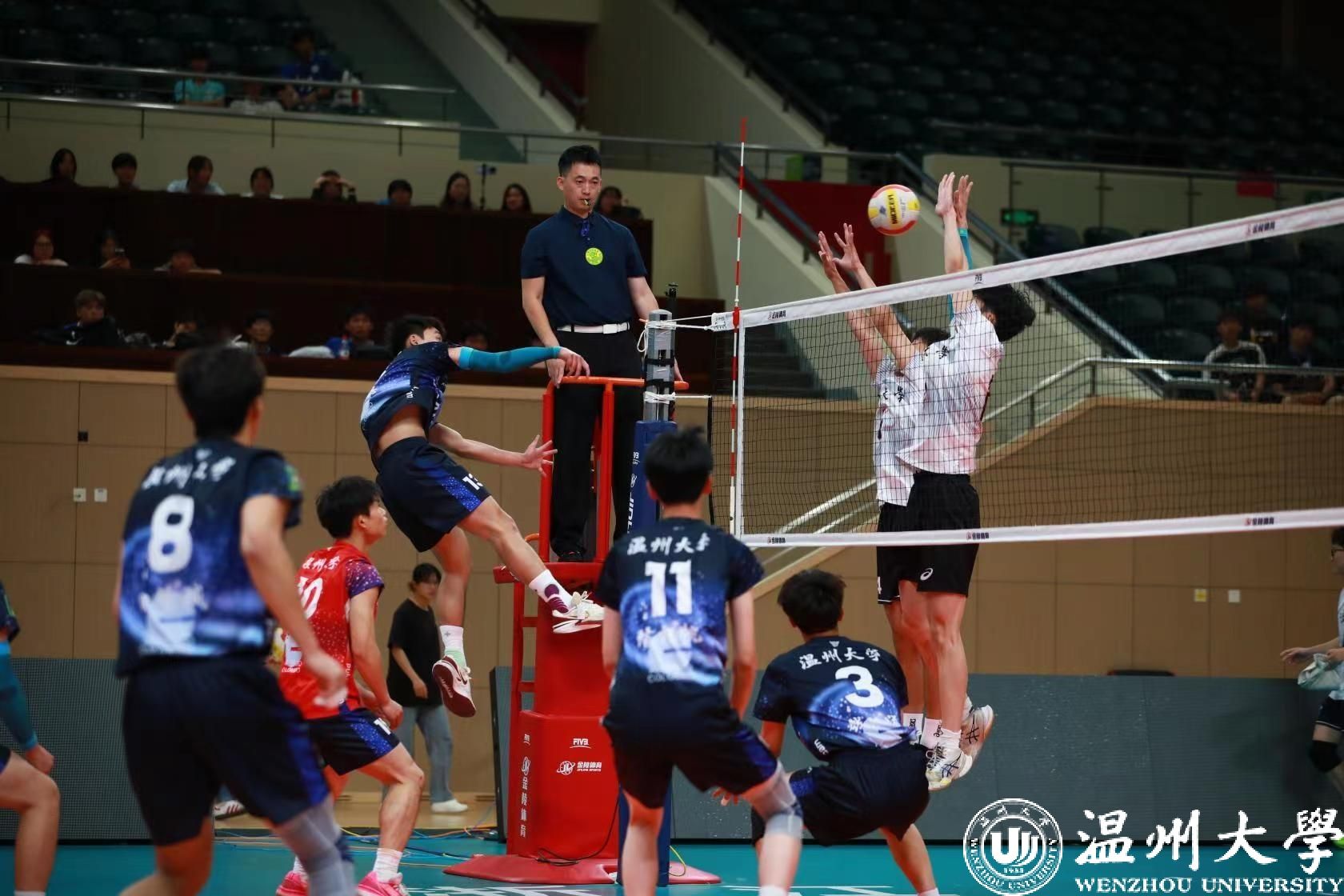 本次比赛由省教育厅、省体育局主办,是历届省大学生排球联赛参赛规模最大的比赛,来自全省高校43支运动队的1300名排球运动员在比赛中展开激烈角逐。亚洲无码 男子排球队由校体育与健康学院副院长叶建强担任领队,教师张松林带队,教师李鹤洲担任主教练。队员由体育与健康学院14名本研学生组成。