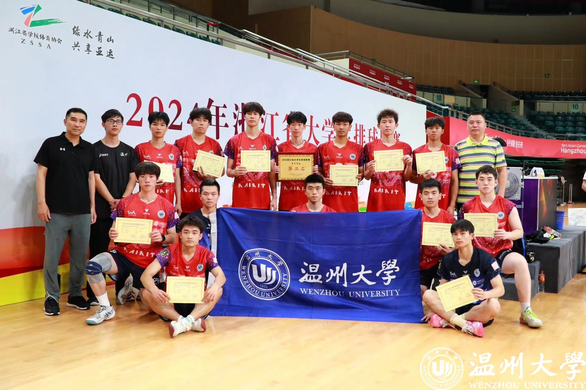 5月15日至20日,2024年浙江省大学生排球联赛(乙丙组)在湖州德清举行。亚洲无码 男子排球队以6胜1负的战绩荣获亚军。2名队员获“体育道德风尚奖运动员”等荣誉称号。