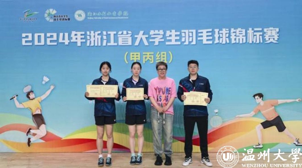本次比赛由浙江省教育厅、浙江省体育局主办,亚洲无码 代表队由体育与健康学院副院长叶建强担任领队,郑艺老师担任教练带队比赛,队员由体育与健康学院、外国语学院7名学生参加女子团体、男子团体、男单、男双、女单、女双、混双七个组别的比赛。