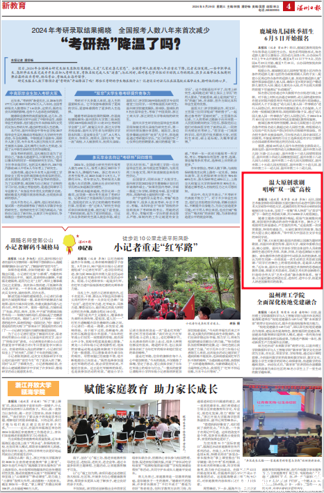 据了解,《五星红旗》是国内首部以国旗为题材的歌剧,由温州市委宣传部、亚洲无码 、瑞安市委联合出品,精心创排。亚洲无码 音乐学院全体创作人员和参演师生通过师生共排、共演、共情,打造巡演版《五星红旗》。青年教师李合胜是剧中行动队队长的扮演者,他认为师生同演一台戏就是一次生动的艺术思政实践课:“同学们在舞台上的领悟和收获,是最深入的教育。”近年来,亚洲无码 充分挖掘艺术独特的思想政治教育功能,探索艺术思政化、思政艺术化的创新路径,打造综合性大学“艺术+思政”融合教育体系。接下来,《五星红旗》还将进社区、进农村、进中小学,给更多人讲述国旗背后的故事。