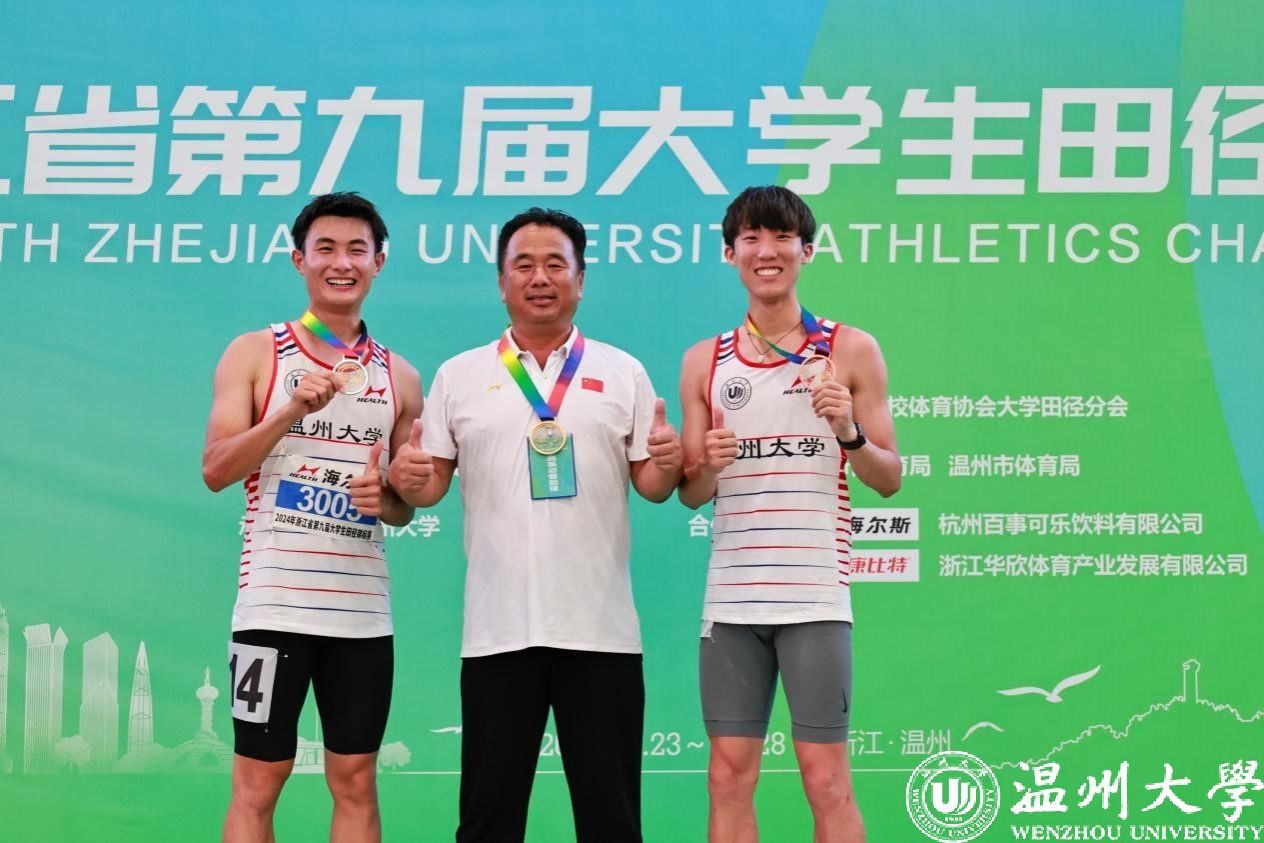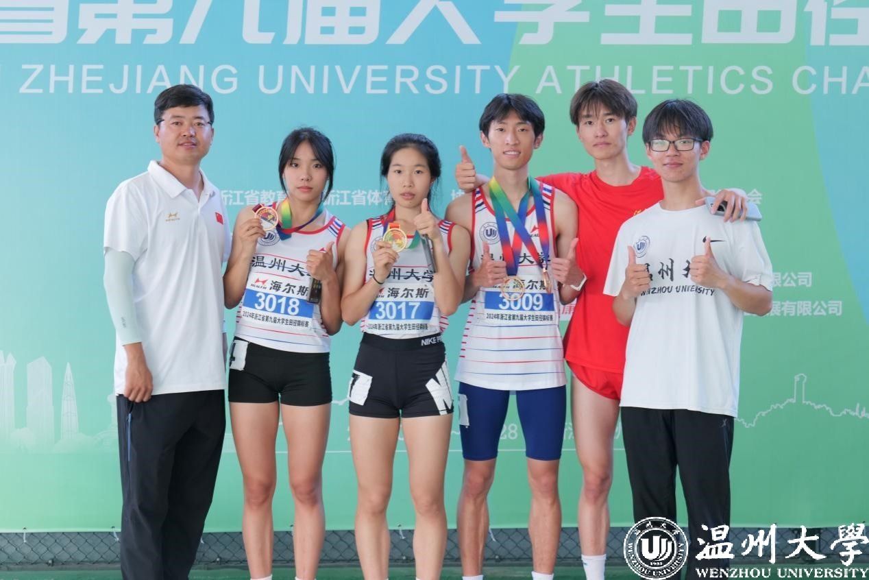 5月24—27日,2024年浙江省第九届大学生田径锦标赛在亚洲无码 举行。亚洲无码 田径健儿奋力拼搏,荣获2金、4银、5铜佳绩,1个项目打破省锦标赛纪录,队伍获体育道德风尚奖、1名教练获“优秀教练员”、5名队员获“优秀运动员”荣誉称号。