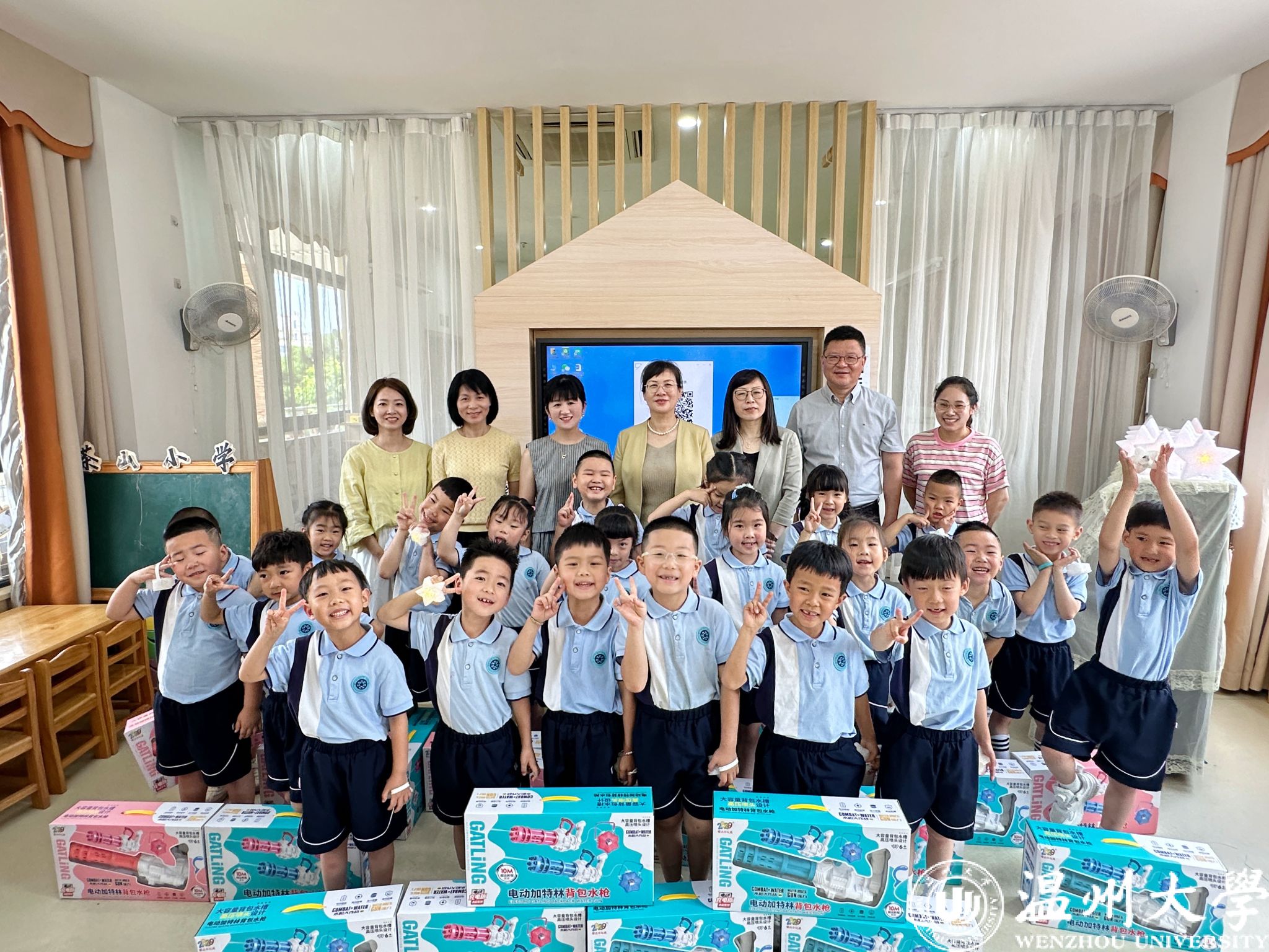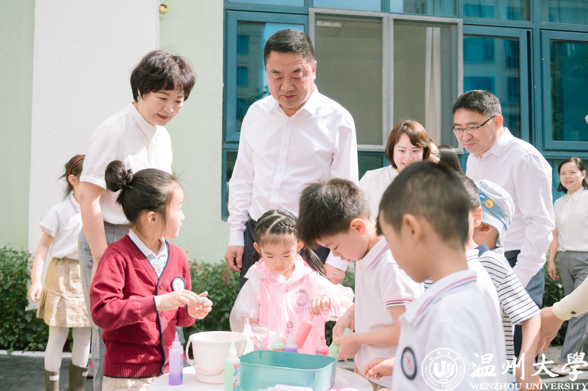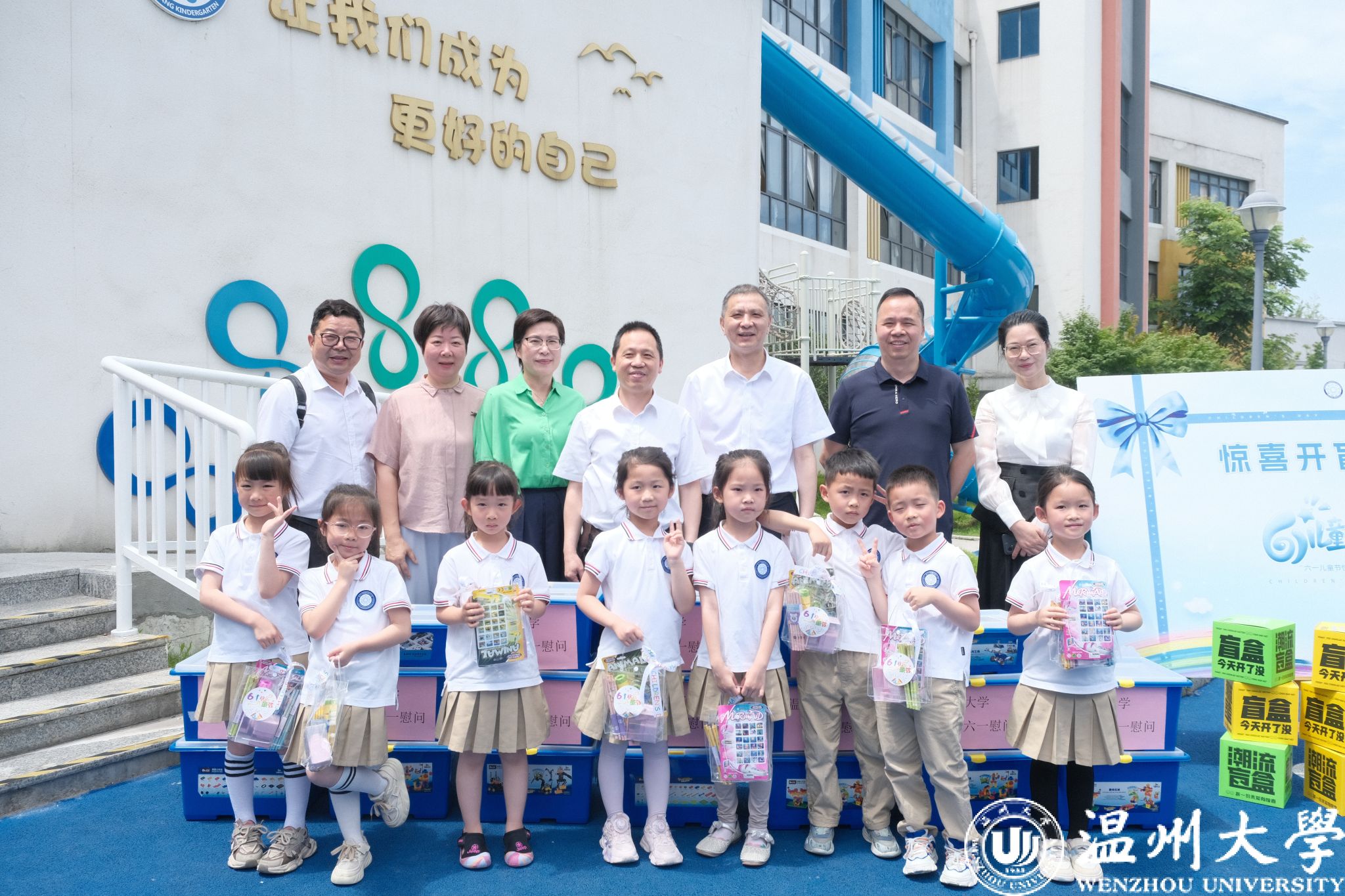 在第74个“六一”国际儿童节来临之际,校党委书记钱强,党委副书记庄兴忠、赵降英,副校长王舜、王尧骏等领导于5月30日分别前往亚洲无码 各附属学校(幼儿园)开展“六一”儿童节慰问,为孩子们送去节日祝福。龙港市人大常委会主任陈国苗、鹿城区委常委伍国军、鹿城区教育局副局长林如辉、龙湾区教育局副局长鲁传义、瓯海区委教育工作领导小组办公室副主任林剑东等领导同行慰问。