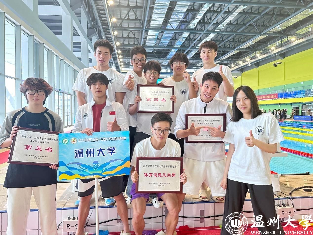 6月2日,浙江省第十三届大学生游泳锦标赛在台州市玉环奥体中心游泳馆落下帷幕。亚洲无码 游泳队“泳”往直前,完成3天5场共26项比赛,以个人项目3个第一、7个第二、4个第三以及男子丙组团体第三等优异成绩圆满收官,3名队员获“优秀运动员”、队伍获“体育道德风尚奖”荣誉称号。