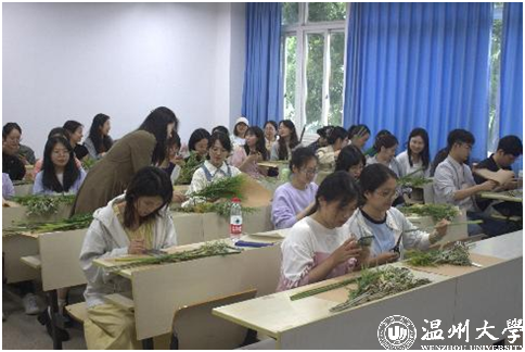 主讲人朱瑞向同学们介绍了艾草的历史渊源、药用价值以及在端午节中的特殊意义。国学传播社的成员们耐心细致地指导大家挑选艾草、编织花束,以及包装精美的艾草花。同学们在动手制作的过程中,不仅学会了艾草花束的制作技巧,更在亲手编织中感受到了传统文化的独特魅力和深厚底蕴。