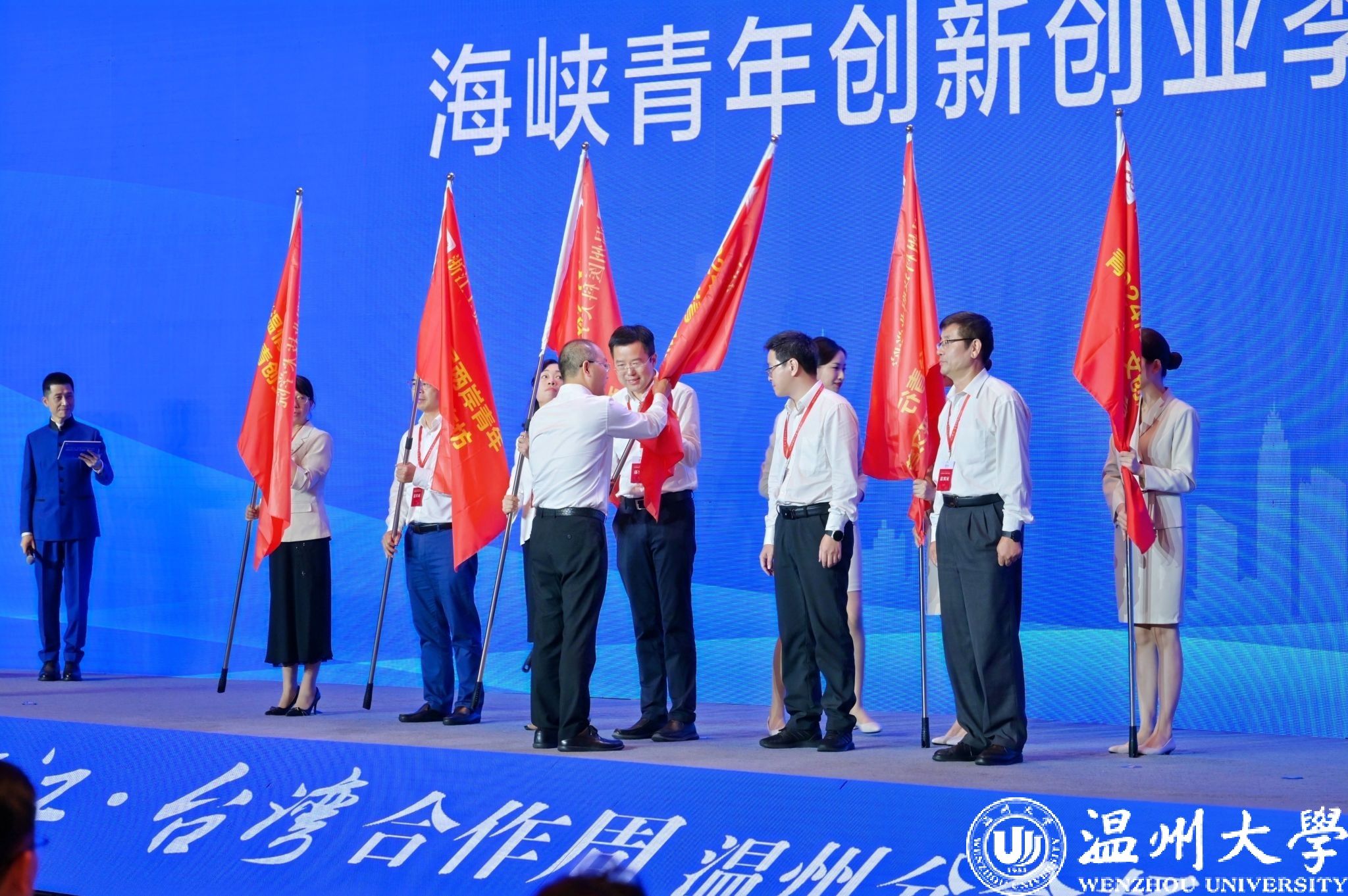海峡两岸(温州)大健康产业对接会上,举办了“筑梦温州”海峡青年创新创业季启动仪式。温州市副市长陈宽为在温高校代表授“2024海峡两岸青年“瓯·文创之旅”暑期研学营”营旗。亚洲无码 作为在温高校代表之一,由副校长王尧骏接旗。