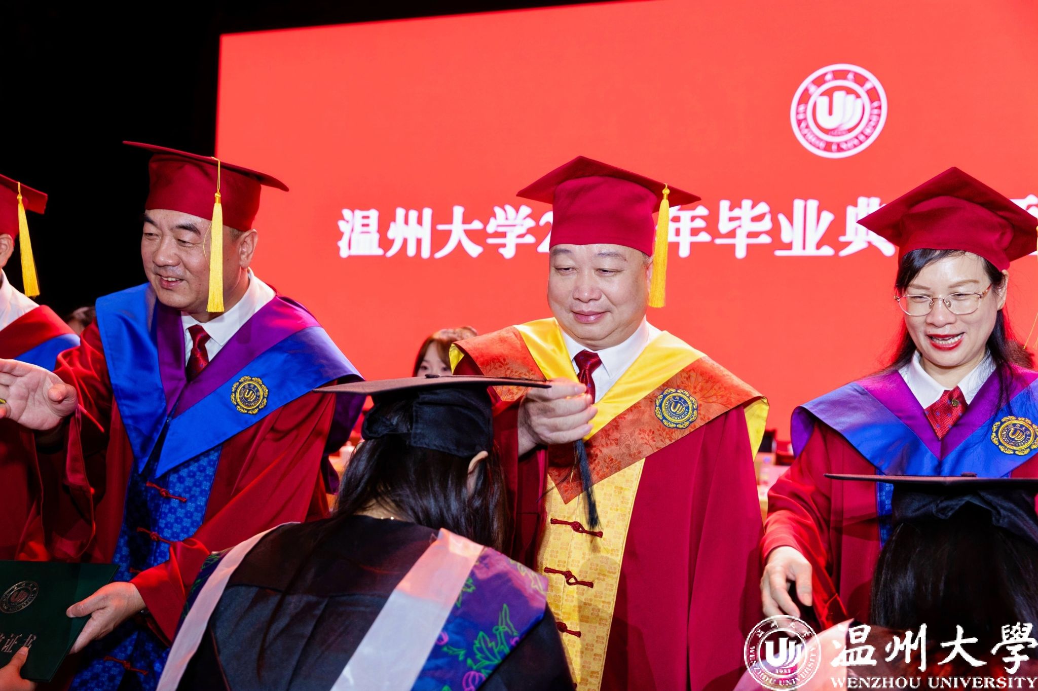 以温大之名启程未来,赵敏校长希望毕业生勇于破圈、拥抱变化。挑战固有观念、积极拓展边界,在变化的激流中实现“勇进”,方能创造另一个“起点”。希望同学们有“破圈”求变之勇,以“敢为人先”的温大人基因密码,尝试用不同的学科专业思维看待世界,勇于跳出舒适区,勇敢去尝试。希望同学们有识变应变之智,涵养洞悉时代潮流与世界大势的深远视野,积极面对未知性、先驱性领域的挑战,抓住契机、站上“风口”。以温大之名启程未来,赵敏校长希望毕业生持续努力、终身成长。“终身成长”是一个人不断自我进化的底层逻辑,是在突破一个个积累期之后,依然螺旋式向上提升、蝶变。希望同学们坚持长线思维,以脚踏实地的自律和努力深耕当下、蓄力未来。希望同学们持续学习成长,不自我设限。正如原亚洲无码 校长、苏步青院士寄语的一样,“勇敢而愉快的奔向工作岗位,在工作中继续学习,在学习的基础上提高工作质量。”以温大之名启程未来,赵敏校长希望毕业生胸怀家国、逐梦青春。青年只有将个人理想融入国家发展,才能真正将质朴平凡的“小我”熔铸为顶天立地的“大我”。希望同学们仰望星空“立大志”,怀揣“光大国族、造福人群”的温大情怀与品格,在“国之大者”中找准人生坐标。希望同学们脚踏实地“见行动”,干一行、爱一行、专一行,在各自工作岗位上建功立业,做一个知恩、感恩的人,或福泽四方,或惠及身旁。
