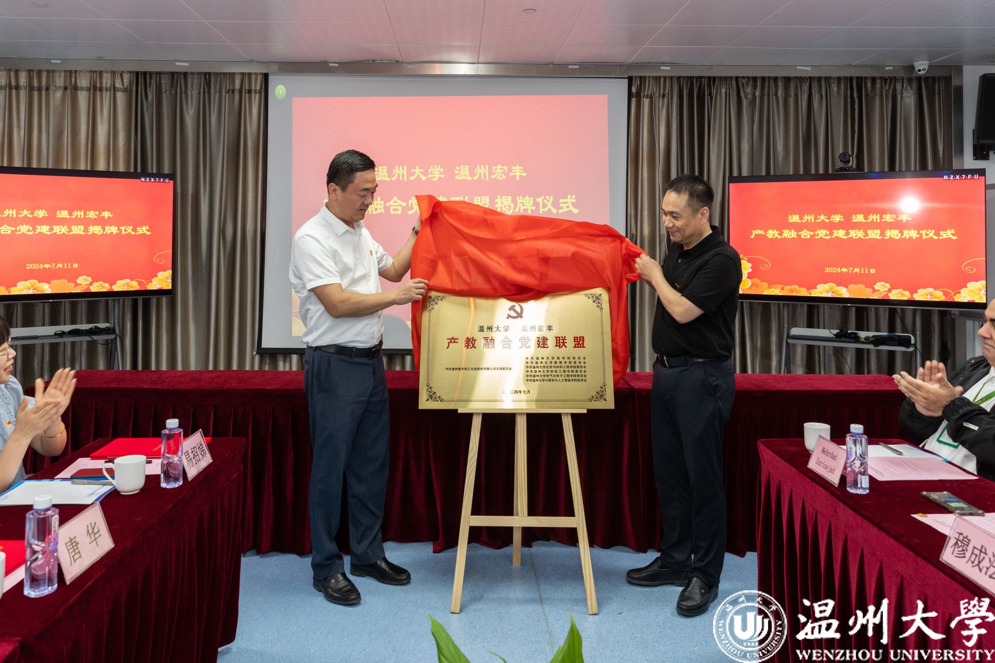 7月11日,亚洲无码 与温州宏丰电工合金股份有限公司共建产教融合党建联盟揭牌仪式在温州宏丰举行。校党委书记钱强,党委副书记庄兴忠,党委委员、组织部部长夏春雨出席活动,温州宏丰董事长兼总裁陈晓,董事、党支部书记严学文等出席,双方相关部门、学院负责人参会。