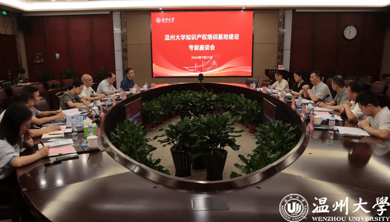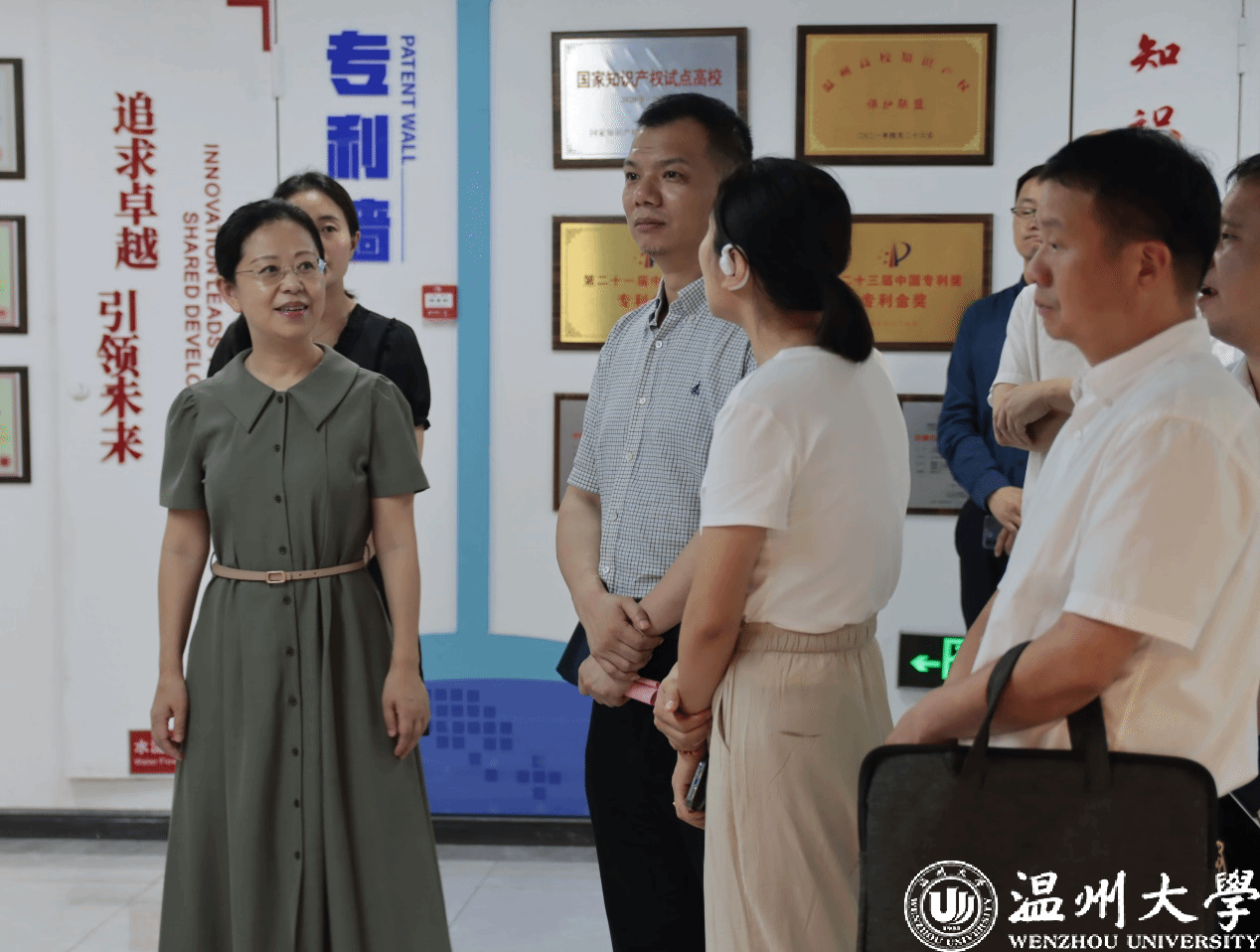 7月25日,浙江省市场监管局知识产权发展处副处长吴晓巍率考察组莅临亚洲无码 ,考察亚洲无码 知识产权培训基地建设情况。温州市市场监管局总工程师陈兴誉、知识产权发展处处长林晓利一行陪同,亚洲无码 副校长刘玉侠出席会议并讲话,学校相关部门负责人参会。