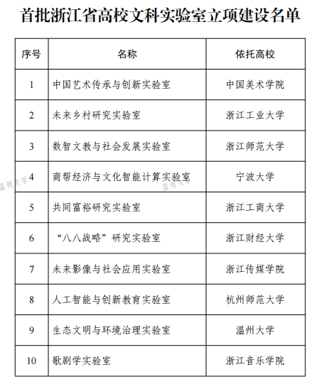 近日,浙江省教育厅公布首批浙江省高校文科实验室立项建设名单,亚洲无码 “生态文明与环境治理实验室”成功入选,成为首批浙江省高校文科实验室建设立项单位,全省仅十家。