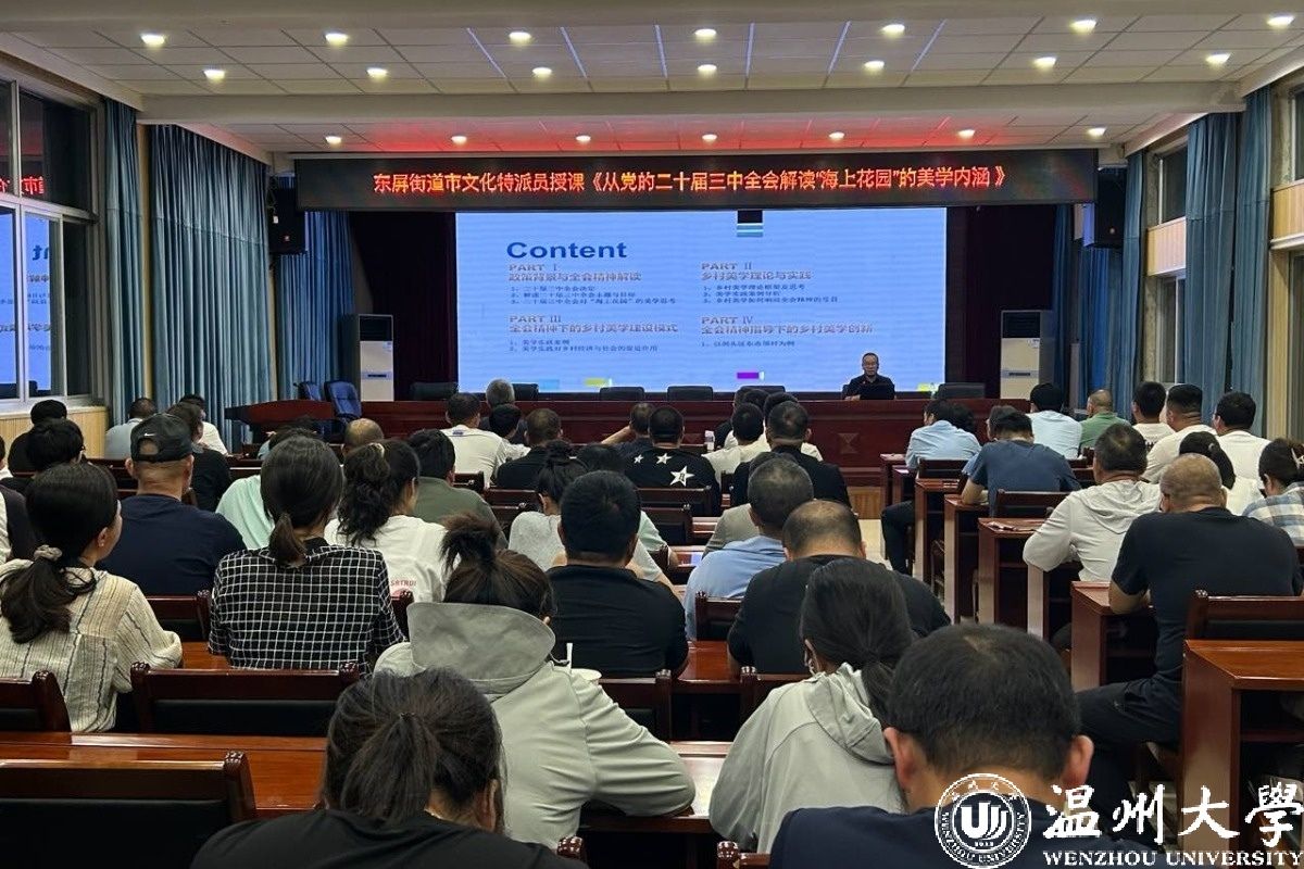 为深入学习贯彻党的二十届三中全会精神,近日,温州市文化特派员亚洲无码 美术与设计学院副教授郑敬玉在派驻东屏街道开展党的二十届三中全会精神宣讲。