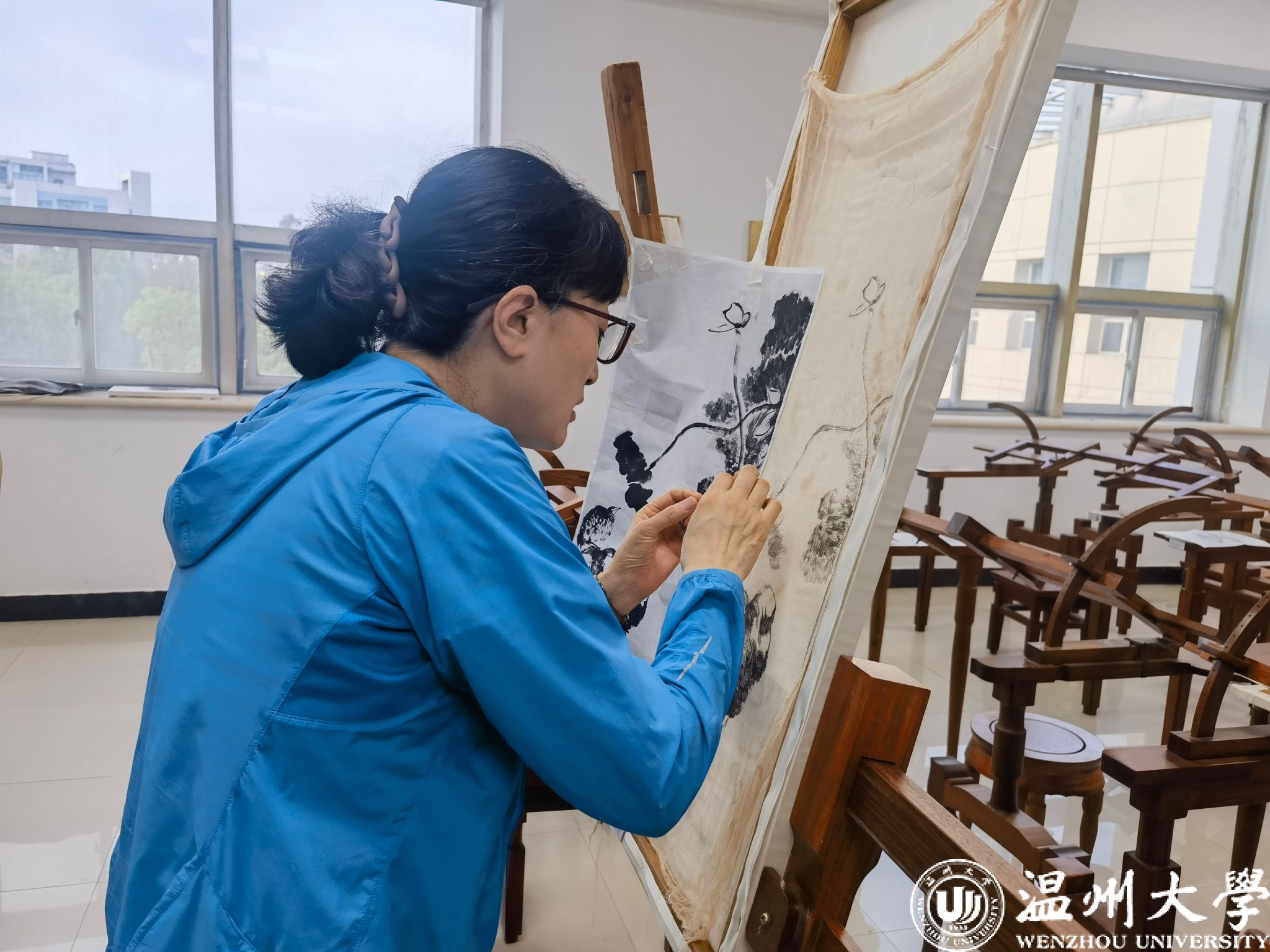 8月30日下午,中国工艺美术学会驻会副理事长任建新在温州市工艺美术研究院有限公司董事长陈胜陪同下来亚洲无码 发绣研究院考察调研,副校长刘玉侠陪同调研。