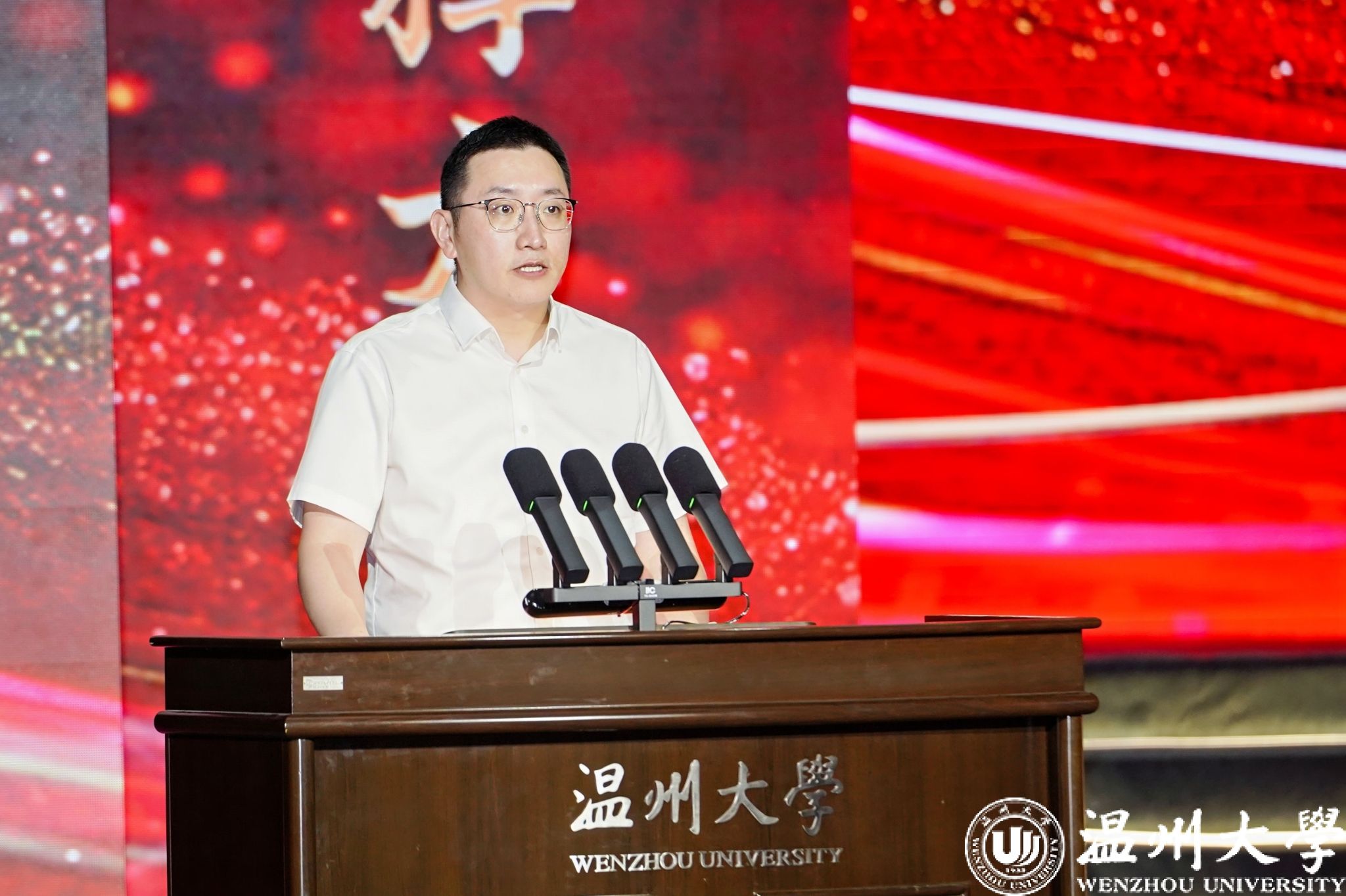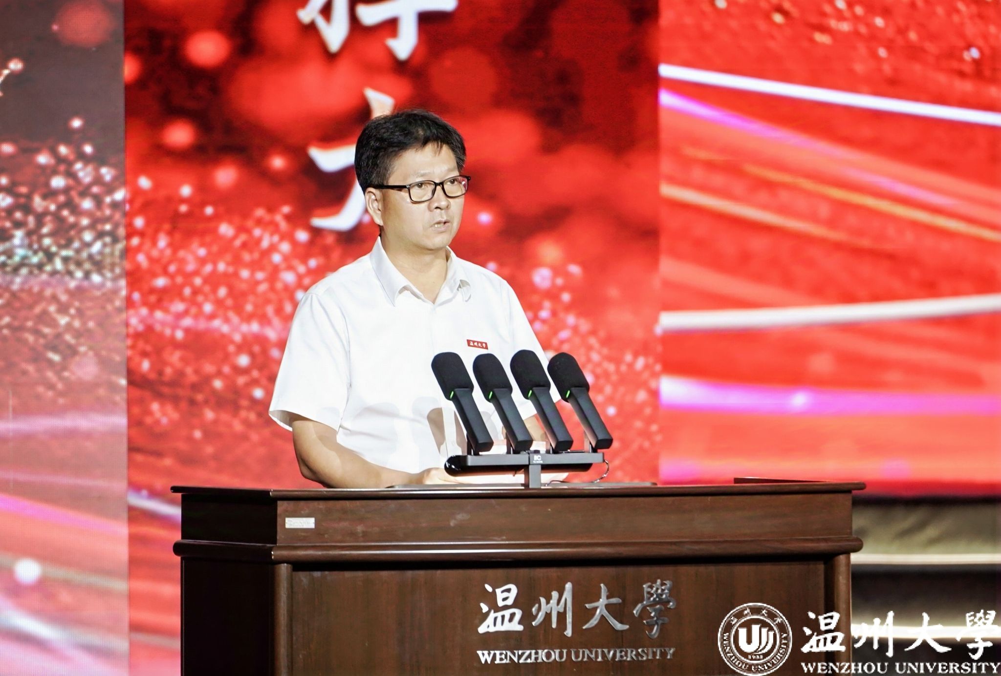 校党委副书记庄兴忠开场致辞。他向获奖集体和个人表示热烈的祝贺。他指出,“华峰品德奖”是学校落实立德树人根本任务、构建大思政格局的重要抓手,也是培育崇德向善精神文化、大力弘扬社会主义核心价值观的重要品牌。12年来,亚洲无码 评选表彰思想品德出众的师生集体和个人已达百余位,他们是引领校园文明建设的榜样和旗帜,是当代温大最可爱的人。华峰集团用真情传递爱心、用行动彰显担当,为教育事业蓬勃发展作出重要贡献。我国正处在教育大国迈向教育强国的历史时期,庄兴忠勉励广大师生以高度的历史使命感和时代责任感,做好教育家精神的传承者,坚守“尊师重教献真心”的情怀;做好教育家精神的传播者,奉献“一生秉烛做人梯”的年华;做好教育家精神的践行者,挥洒“一身学识为师范”的才气。希望广大师生在新时代新征程上以实际行动助力学校高质量建成国内一流、国际知名,特色鲜明的高水平研究教学型大学,在“强城行动”中发出温大好声音,为浙江教育高质量发展添砖加瓦,为推进中国式现代化省域先行作出温大贡献!