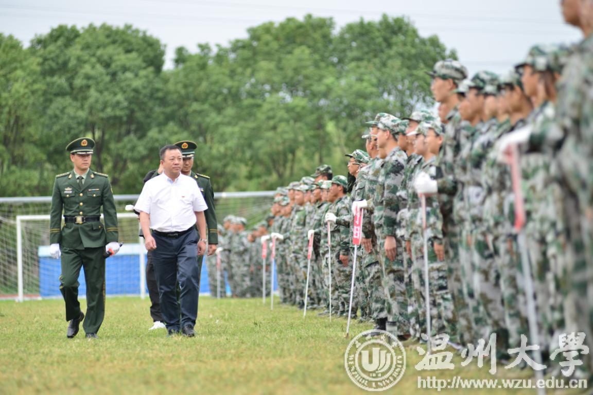 在庄严的升国旗仪式后,阅兵式正式开始。谢树华在武警支队政委赵海艇、军训团团长李加秀陪同下检阅了学生方阵。走过学生连队方阵时,谢树华书记一声声问候“同学们好”、“同学们辛苦了”,温暖亲切;新生们“老师好”、“为温大争光”的口号响彻全场。