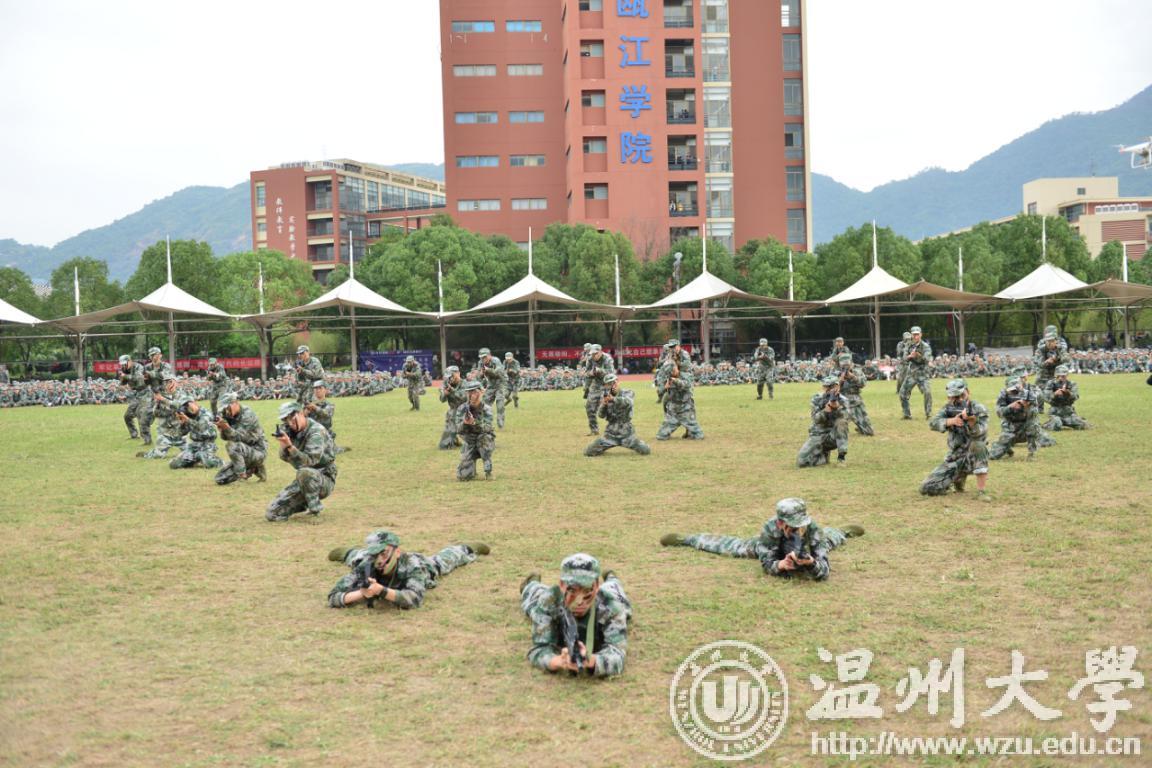 伴随着雄壮的进行曲,分列式汇报展示开始。各方队迈着整齐划一的步伐依次通过主席台,接受领导检阅。他们步伐坚定,口号嘹亮,充分展现了新一届温大学子奋发向上的精神面貌。随后,受训新生们分别进行了女子擒敌拳术、防恐战术、应急棍术、防暴队形表演,武警教官的擒敌对抗表演将大会推向高潮,他们铿锵有力的动作、虎虎生威的阵势引来全场的高声欢呼和热烈掌声。