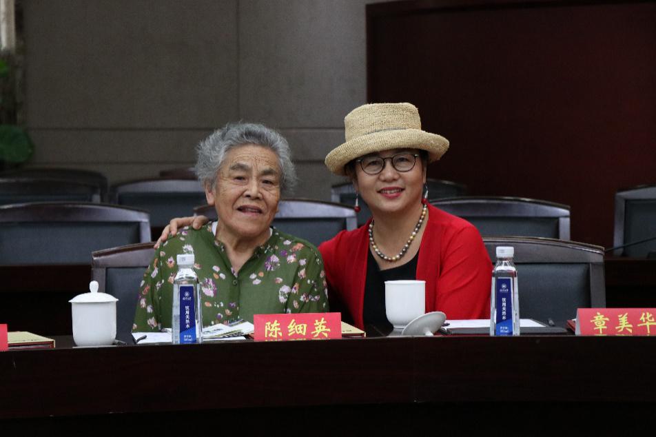 图为陈细英与女儿章美华参加北美校友会代表返校座谈会