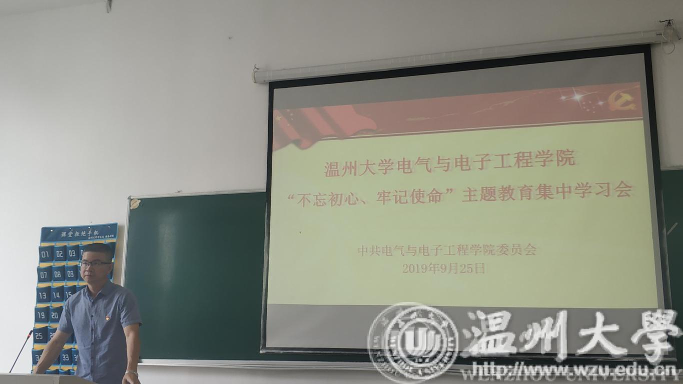 【电气与电子工程学院】李方强书记公布了学院党组织机构建设的基本情况,叮嘱各支部书记和支委提高党性修养,切实担起责任,做好服务工作,尤其是要抓好现阶段的主题教育工作。然后,李书记向全体党员通报了学校和学院“不忘初心,牢记使命”主题教育开展以来的基本情况、特色动作以及有待改进的地方。李方强书记指出,本次主题教育历时三个月,希望所有普通党员同志自学时候能够坚持做到“每天学习半小时,学习强国勤打卡”,每天微信打卡汇报交流。每周一次支部集中学习时要有主题、讲成效、多发言。通过学习教育、检视整改,达成理论学习有收获、思想政治受洗礼、干事创业敢担当、为民服务解难题、清正廉洁作表率的目标。全体师生党员分支部参加了学院创新形式集体学习活动——主题教育应知应会知识“集体答题会”,并进行了必读书目集中研讨学。