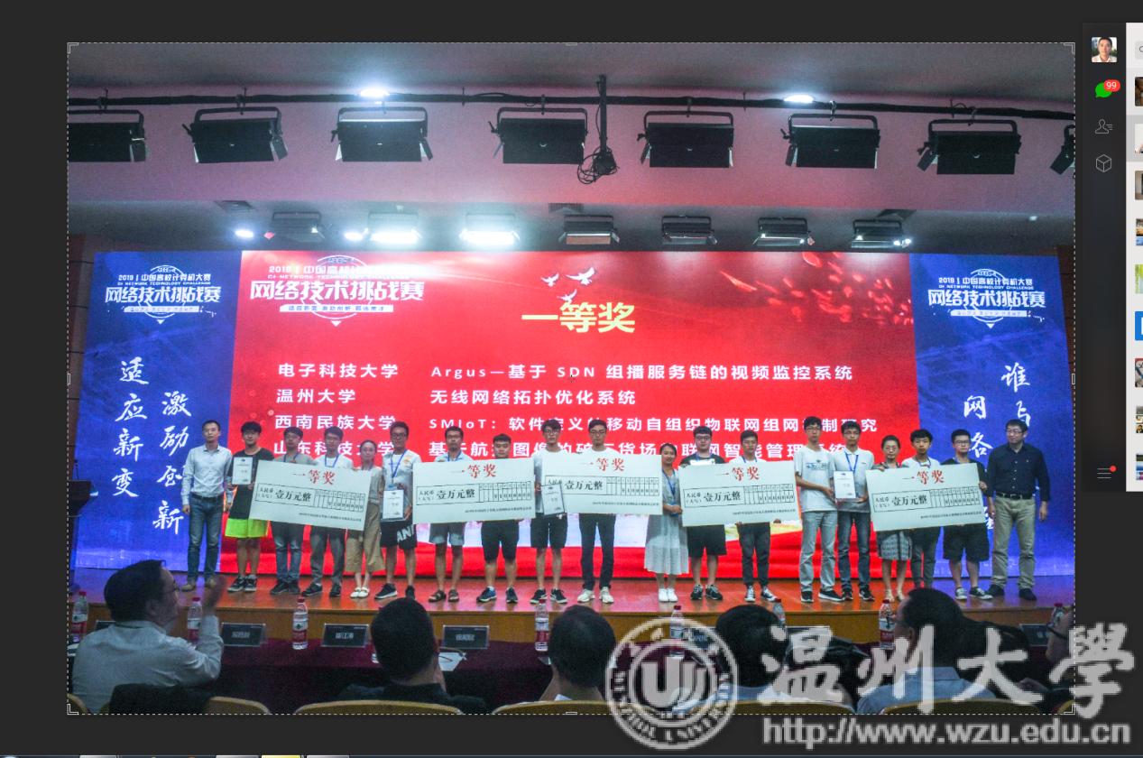近日,由亚洲无码 承办的2019年度“中国高校计算机大赛-网络技术挑战赛”总决赛圆满落幕,温大学子表现亮眼,计算机与人工智能学院参赛的八支队伍共斩获三项一等奖、三项二等奖和一项三等奖。其中,唐震洲老师指导的作品《无线网络拓扑优化系统》获得创意赛一等奖,黄辉老师指导的作品《基于SDN的设备可视化管理与自动化运维设计与实现》获得技术攻关-软件定义网络赛项一等奖,刘军老师指导的作品《基于AWS的出租车行业大数据分析平台》获得技术攻关-软件定义的云计算赛项一等奖。