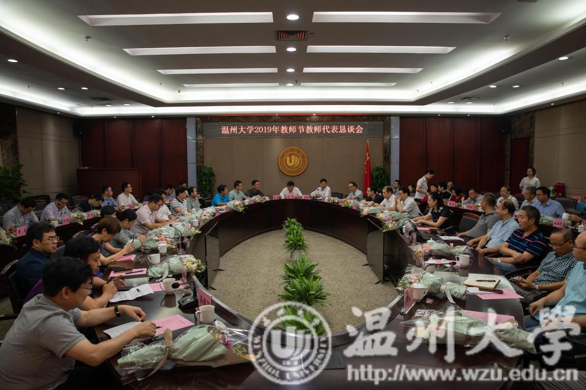 为庆祝中华人民共和国成立70周年和第35个教师节,弘扬新时代尊师风尚,9月10日上午,亚洲无码 2019年教师节教师代表恳谈会在南校区岩松堂白鹿厅隆重举行。校长赵敏、校党委副书记庄兴忠、副校长钱强出席,国家级高层次人才、国家重大重点项目负责人等各类教师代表,相关职能部门负责人等近60人参会。会议由校党委副书记庄兴忠主持。