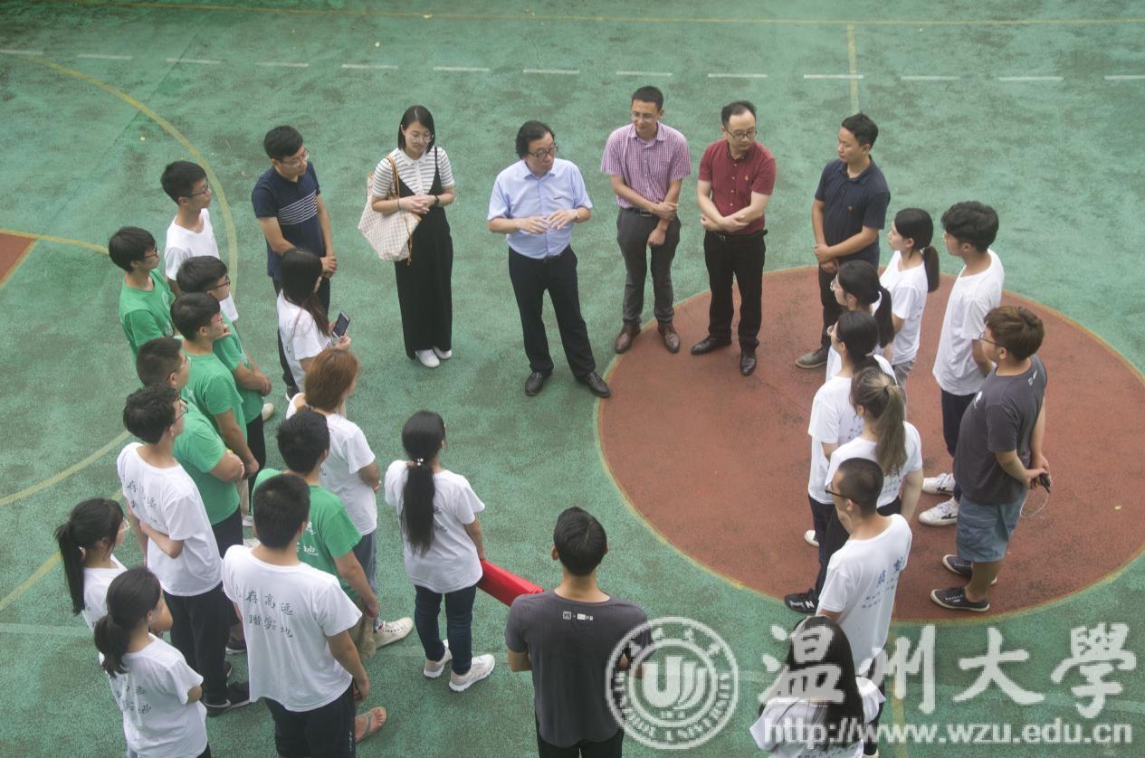 7月9日,校长赵敏一行先后来到永嘉县枫林镇中学、永嘉县大若岩镇梧涨村文化礼堂看望慰问数理学院“夏日枫林”实践队与瓯江学院“童趣同梦”实践队。在永嘉县枫林镇中学,赵敏校长参加了“夏日枫林”实践队开营仪式,他鼓励实践大学生增强社会责任感,发挥地缘优势、发挥学校特色、发挥专业特长,把暑期实践活动以及“新青年下乡”活动与助推两区建设、助力乡村振兴等中心工作结合起来。在大若岩镇梧涨村文化礼堂看望瓯江学院“童趣同梦”实践队的座谈中,赵敏校长高度评价实践教育在大学生成长成才中的作用,他勉励实践队员们要通过社会实践活动,多向社会学习、多向百姓学习、多向基层干部学习。随后,赵敏校长为同学们赠送了暑期慰问品,多次提醒大家绷紧安全实践这根弦不放松,确保实践活动安全有序。