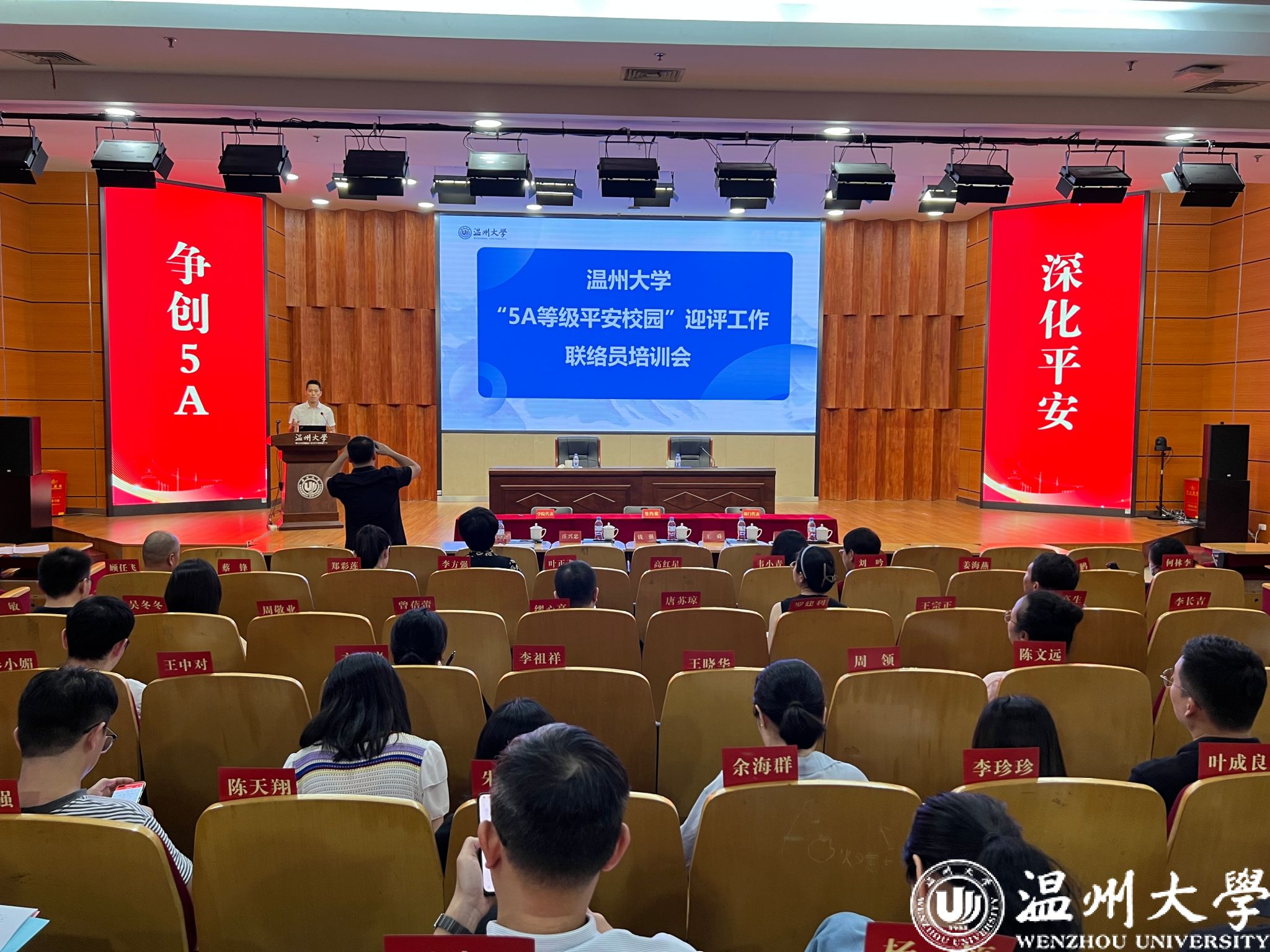 动员大会结束后举办了“5A等级平安校园”迎评工作联络员培训会。安全保卫作专题培训报告,与会联络员就相关问题进行了沟通和交流。会议发放了“五件套”资料,包括安全教育书籍、工作方案文件、安全责任书、工作须知、应知应会材料等,为参会人员提供了全面的指导和支持。