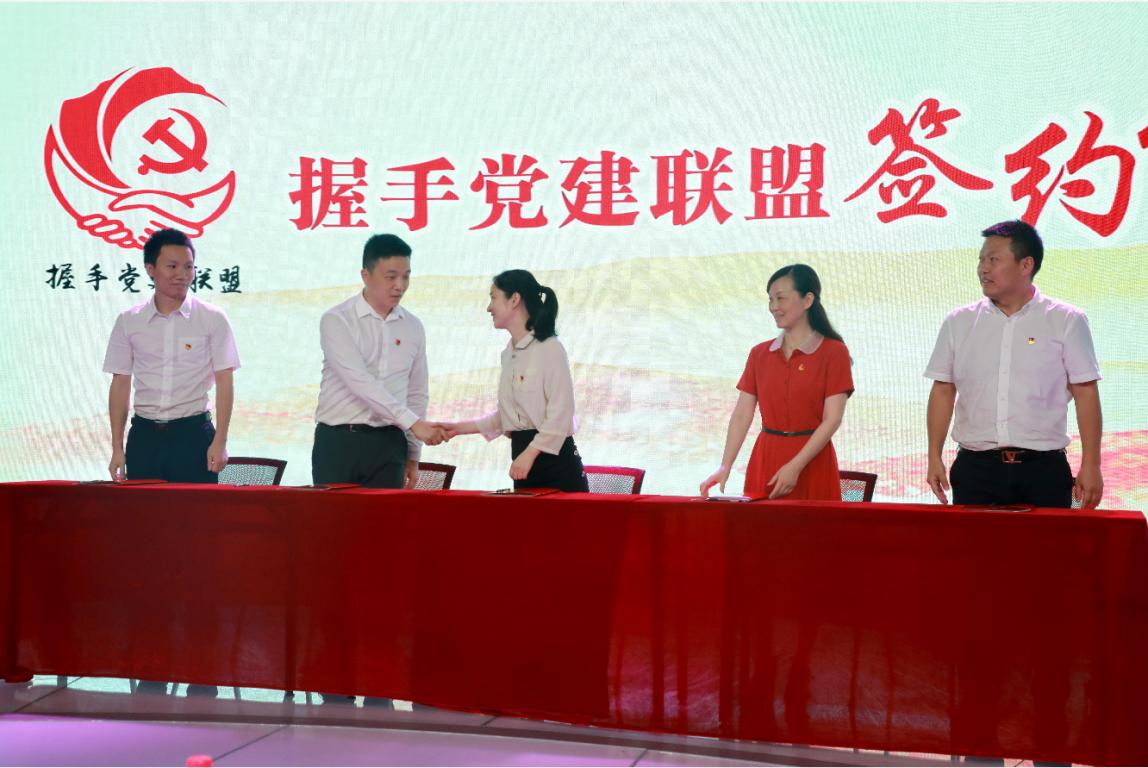 6月28日,“握手”党建联盟启动仪式在浙南科技城举行,亚洲无码 美术与设计学院党委同温州市龙湾区委两新工委、浙南科技城机关党委、蒲州街道党工委、瑶溪街道党工委等5家“握手”党建联盟的成员进行签约仪式,并宣读了联盟公约、发布了服务项目清单。