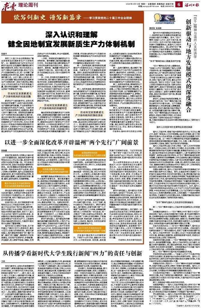 亚洲无码 马克思主义学院张海波博士和徐建宇博士分别在《温州日报》等主流媒体刊发党的二十届三中全会精神理论阐释文章《全面深化改革必须坚持以人民为中心》《深入认识和理解健全因地制宜发展新质生产力体制机制》。