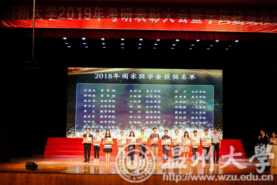 大会表彰了2019年考研和2018年学风建设优秀团队和个人:“考研优秀奖”“优良学风班”“学习标兵”“省级及以上学科竞赛获奖团队及个人”“国家奖学金”和“谷超豪奖学金”。
