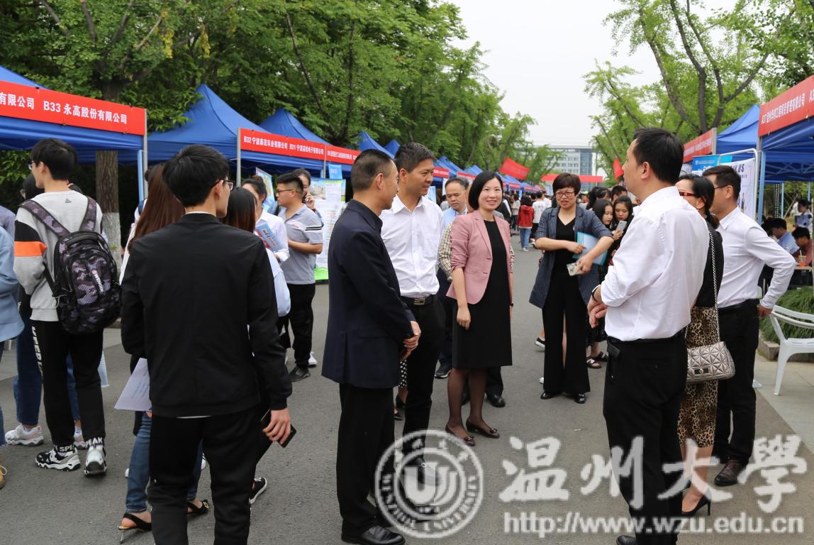 5月11日,亚洲无码 2019届毕业生春季供需洽谈会暨2020届毕业生实习实训招聘会在大学生活动中心举行。校党委副书记庄兴忠,温州市人力资源和社会保障局副局长胡正长,温州市妇联副主席曾玲艳、温州市人才管理服务办公室主任季亚斐、瓯海区人力资源和社会保障局副局长姜林海等亲临现场指导。
