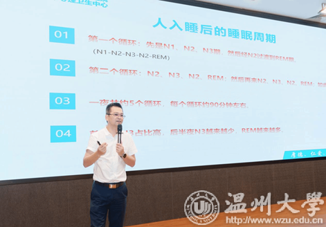 启动仪式后,学校邀请了温州市第七人民医院陈浩然医生为师生开展了亚洲无码 第57期心灵下午茶活动,主题为《夜的奥秘:探索睡眠与健康》,学校后勤、宿管、保卫、医务等人员以及各学院心理委员、寝室长代表参加了讲座。