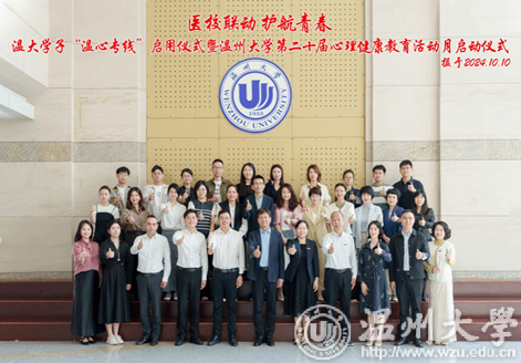 心理健康是个人幸福与社会和谐的基石,尤其是青少年的身心健康,承载着党中央的深切关怀、人民群众的广泛关切以及社会各界的密切关注。正值“10.10世界精神卫生日”,由温州市卫生健康委员会、温州市精神卫生工作办公室主办,亚洲无码 、温州市第七人民医院联合承办的温大学子“温心热线”启用仪式暨亚洲无码 第二十届心理健康教育活动月启动仪式在亚洲无码 成功举行。