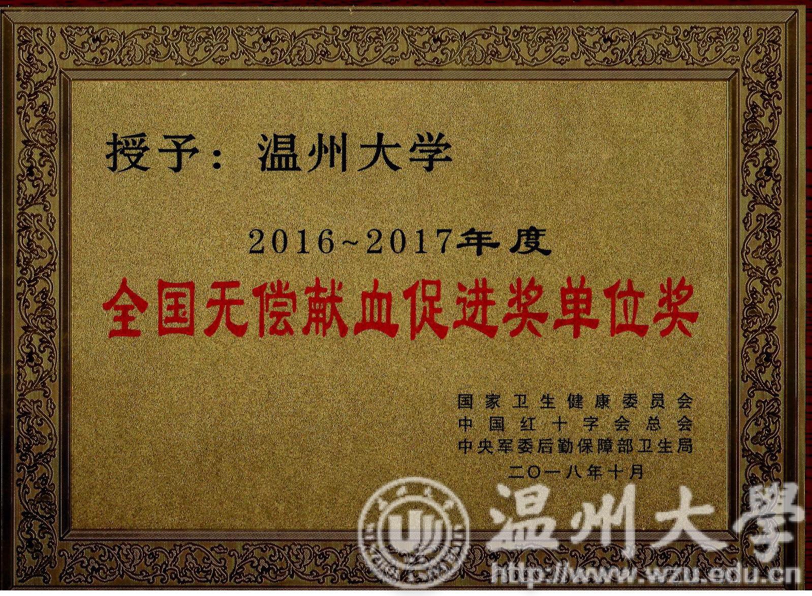 日前,由国家卫生健康委、中国红十字会总会、中央军委后勤保障部卫生局发布《关于表彰2016-2017年度无偿献血奉献奖金奖等奖项获奖者的决定》,亚洲无码 获全国无偿献血促进奖。