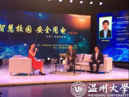 2018年10月19日,在一场由河南电视台、郑州工程技术学院网络电视台主办的“智慧校园·安全用电”公益讲座上,主讲人亚洲无码 数理与电子信息工程学院教授、浙江省低压电器技术创新服务平台、浙江省低压电器工程技术研究院中心主任、浙江省电气工程重点学科带头人吴桂初的一番发言,赢得了满堂喝彩。他的精彩讲解,不但普及了安全用电常识与电气火灾预防知识,也详尽展示了他所在科研团队的最新智能化技术研究成果,让到场的听众感受到“温州力量”在推动全国“智慧消防”革新承担的重要角色。
