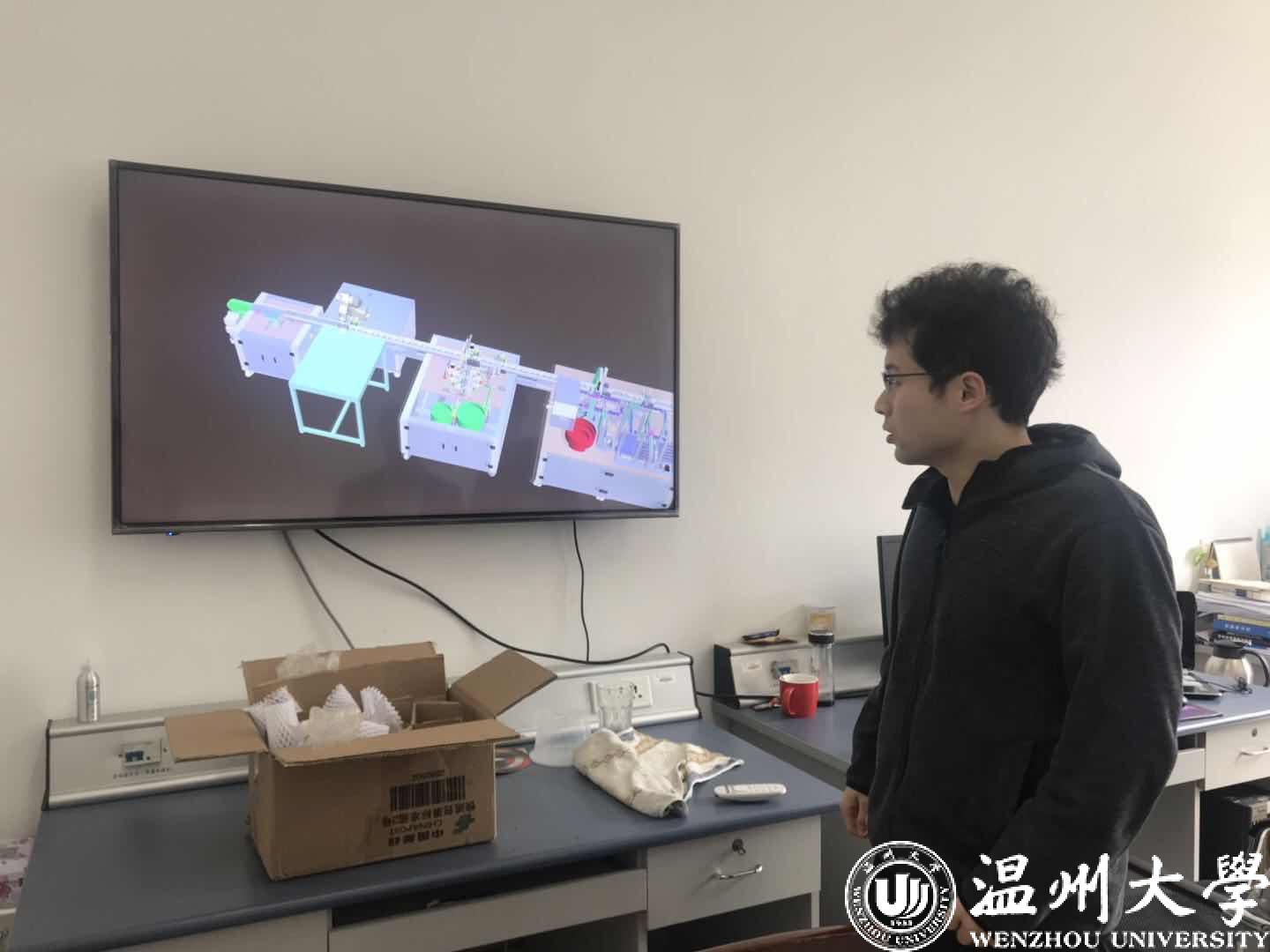 虚拟现实试验室中,工作人员正在讲解流水线的模型