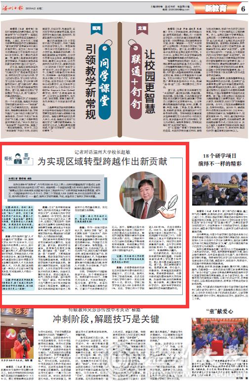 记者:赵校长,你好!温大今年面向全球再招百名以上博士的“抢人”动作,引发了温州各界的广泛关注。聚集人才不仅需要“真金白银”看得见的待遇,更需要有让人才施展才能、实现抱负的良好环境。对此,温大有什么部署和优势呢?