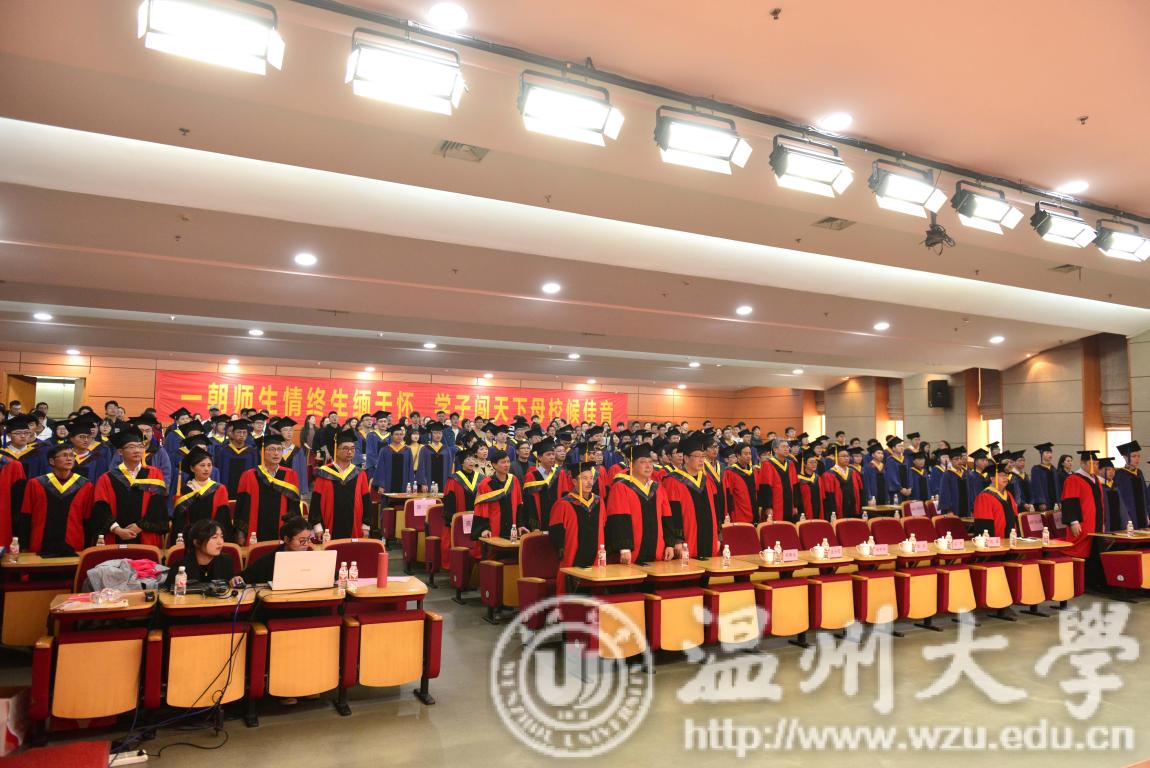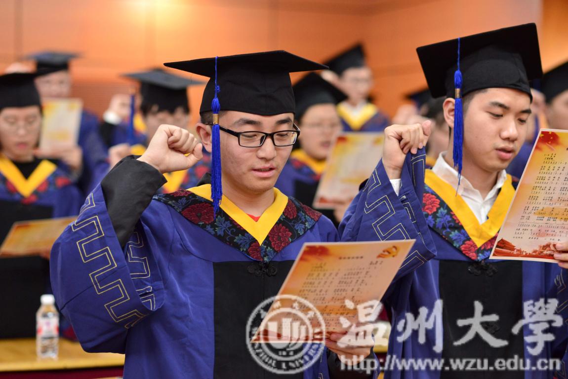导师代表、机电学院周宏明教授代表全体硕士生导师勉励毕业生要以积极的心态面对人生,要以敢于担当的责任面对社会,要以努力拼搏的精神面对事业。毕业生代表、生环学院程银子同学在发言中深切表达了自己对母校和导师的感恩之情,并带领全体毕业研究生宣誓,号召全体毕业生牢记师长的教导,做一名“有理想、有情怀、有担当”的温大人。