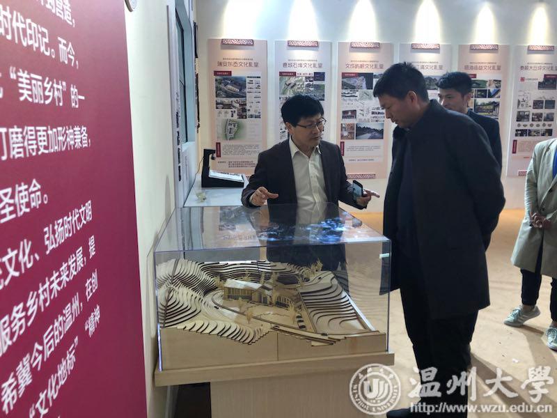 在2019温州国际时尚文化产业博览会闭幕式上,校党委副书记庄兴忠、市委宣传部常务副部长邱小侠为大赛获奖者颁奖。获奖作品集中在文博会上以“礼泽吾乡”为主题,进行为期5天的展览。展览分“礼归瓯越”“如沐乡风”“撷珍乡梓”“栖寄乡园”“守望乡愁”“熹光长润”六大板块。设计师的不同创意、独特风格,为文化礼堂建设提供了不同视角、全新理念。展览上除展板展示以外,还设置了多组由亚洲无码 建筑工程学院学生精心制作的文化礼堂建筑模型,更为直观、更具品质感。展览吸引了不少市民驻足观看,市委常委、宣传部部长胡剑谨,校党委副书记庄兴忠兴也到展区参观作品并给予高度评价。