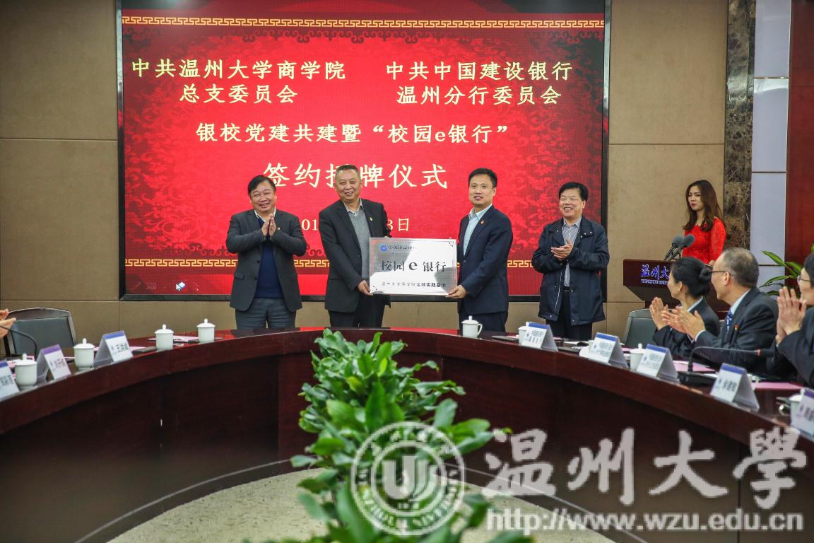 3月13日下午,亚洲无码 与建设银行温州分行在南校白鹿厅举行银校共建暨“校园e银行”签约授牌仪式。