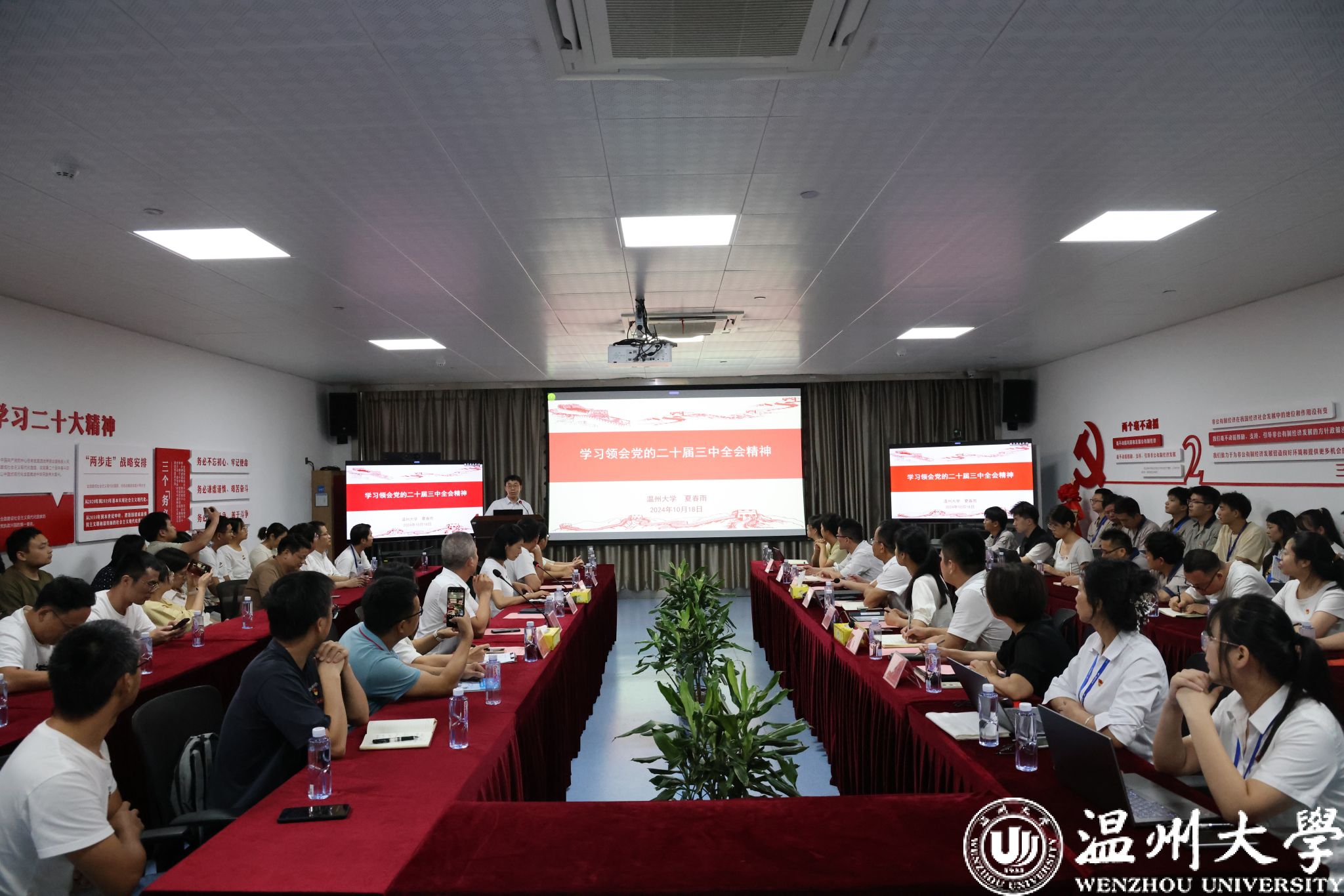 活动中,双方党员共同参观了温州宏丰党建文化展示厅、世界宏丰展示厅,重温了入党誓词,举行了“亚洲无码 就业实习基地”授牌和电气与电子工程学院、温州宏丰“联合实验室”揭牌仪式。活动最后,大家集聚一堂,共同聆听亚洲无码 党委委员、组织部部长夏春雨教授讲授《深入学习领会党的二十届三中全会精神》专题辅导报告。